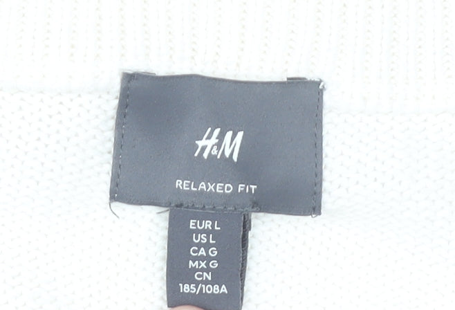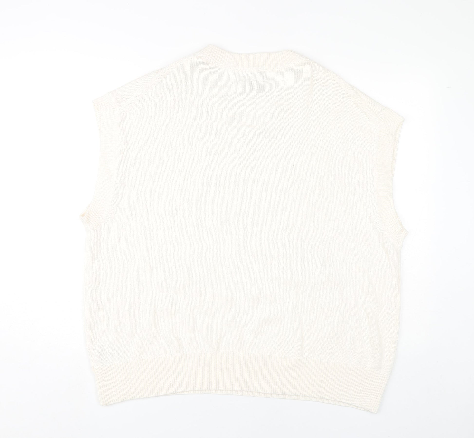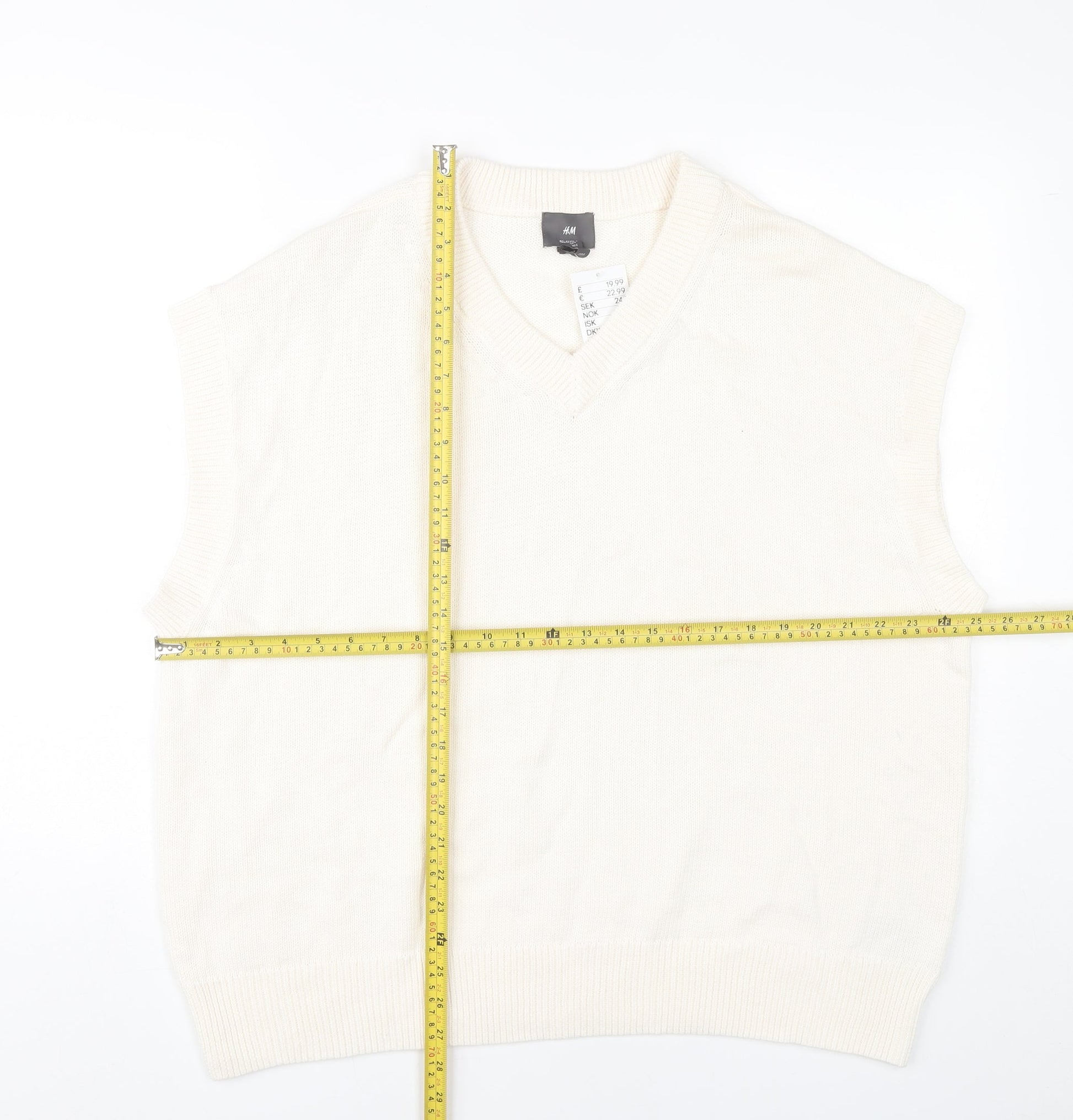 H&M Men’s Ivory Cotton Sleeveless V-Neck Vest Jumper L Relaxed Fit