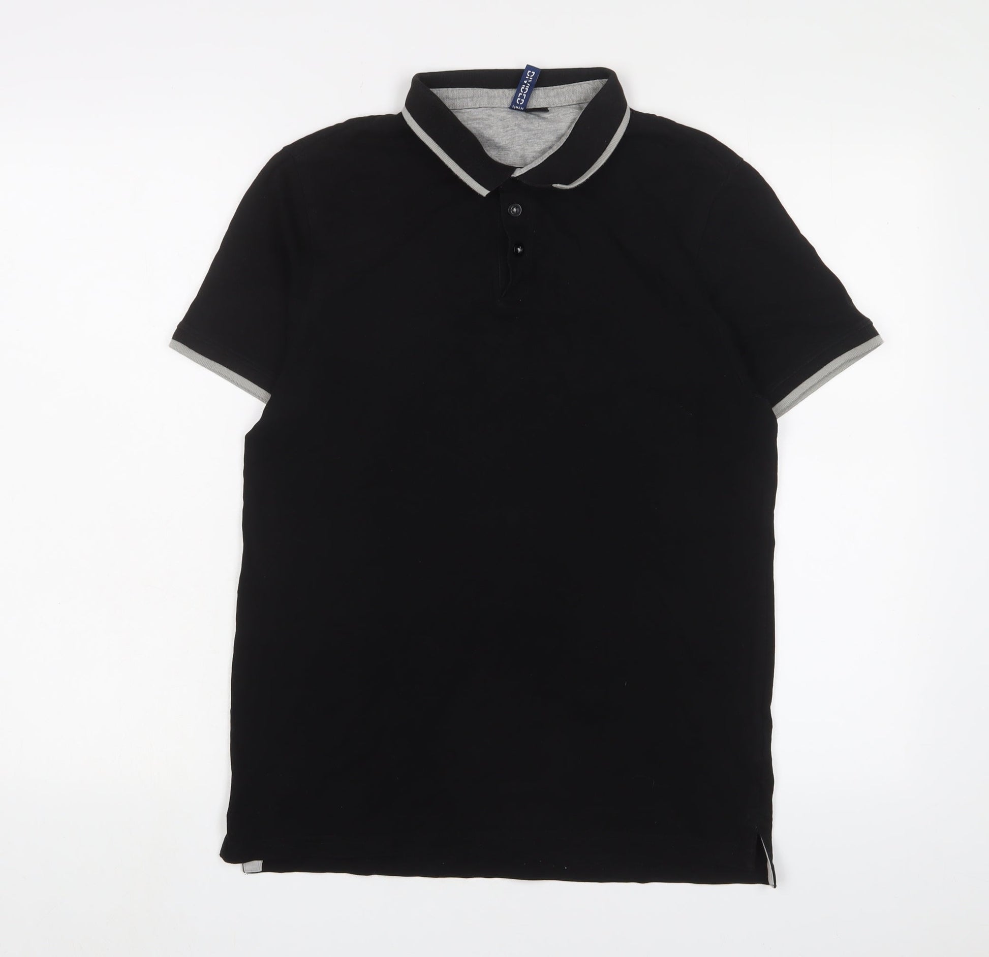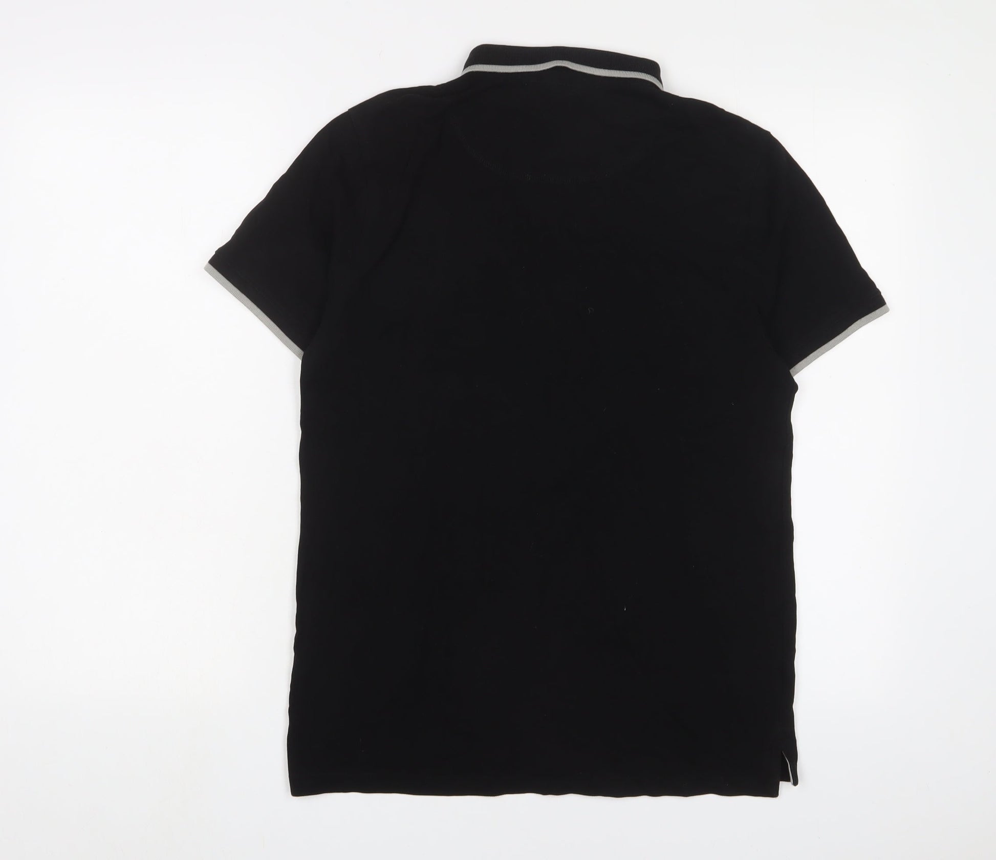 H&M Mens Black Cotton Polo Size M Collared Button