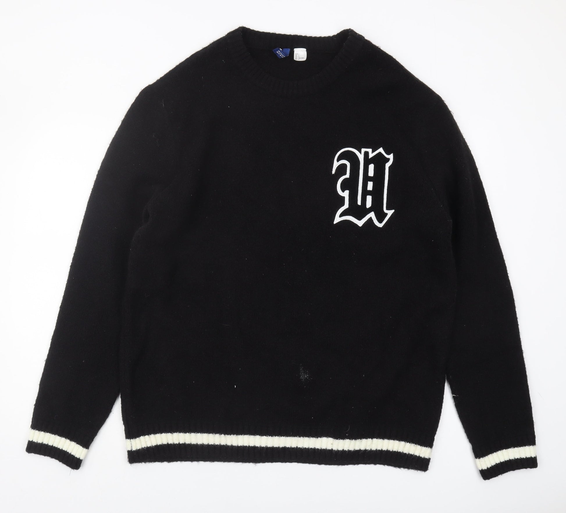 H&M Men's Black Logo Sweater, L, Casual Knitwear