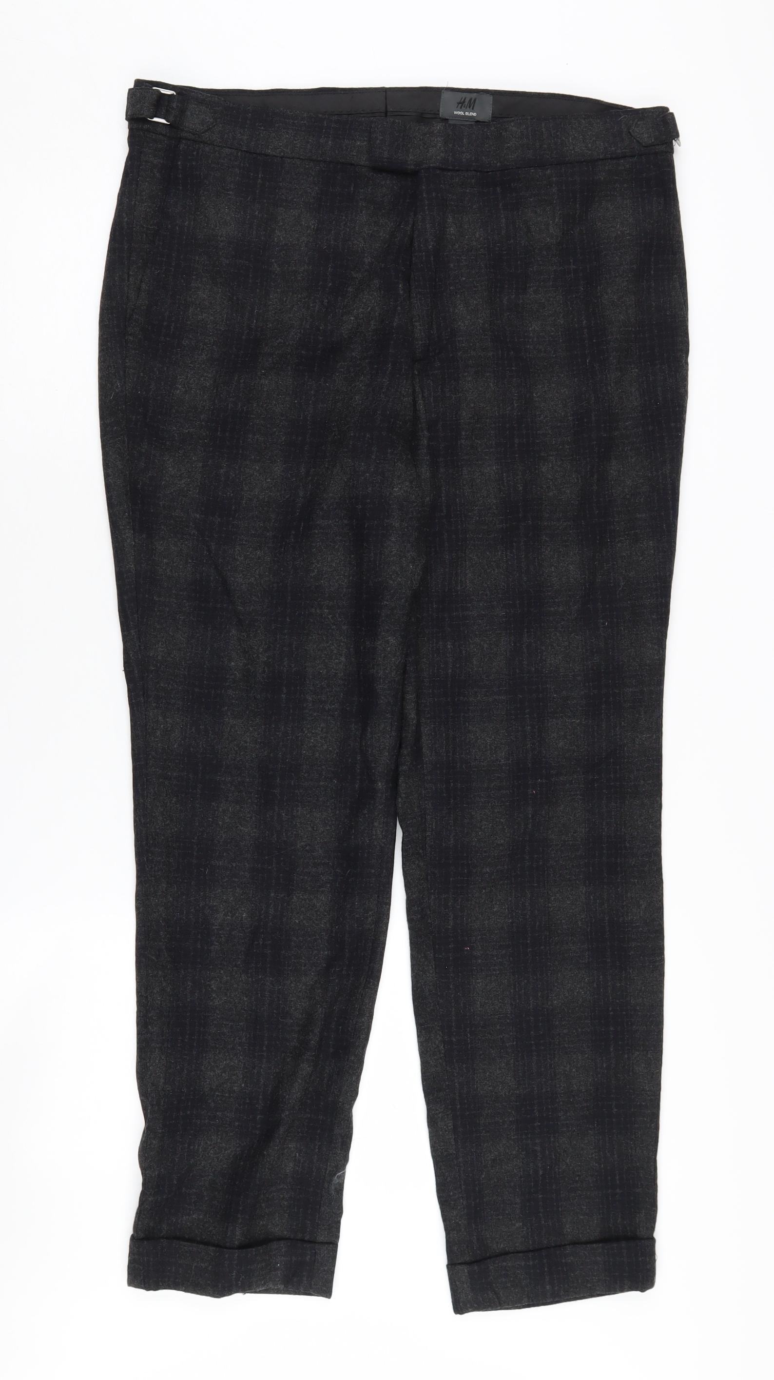 H&M Men's Black Plaid Wool-Blend Trousers L