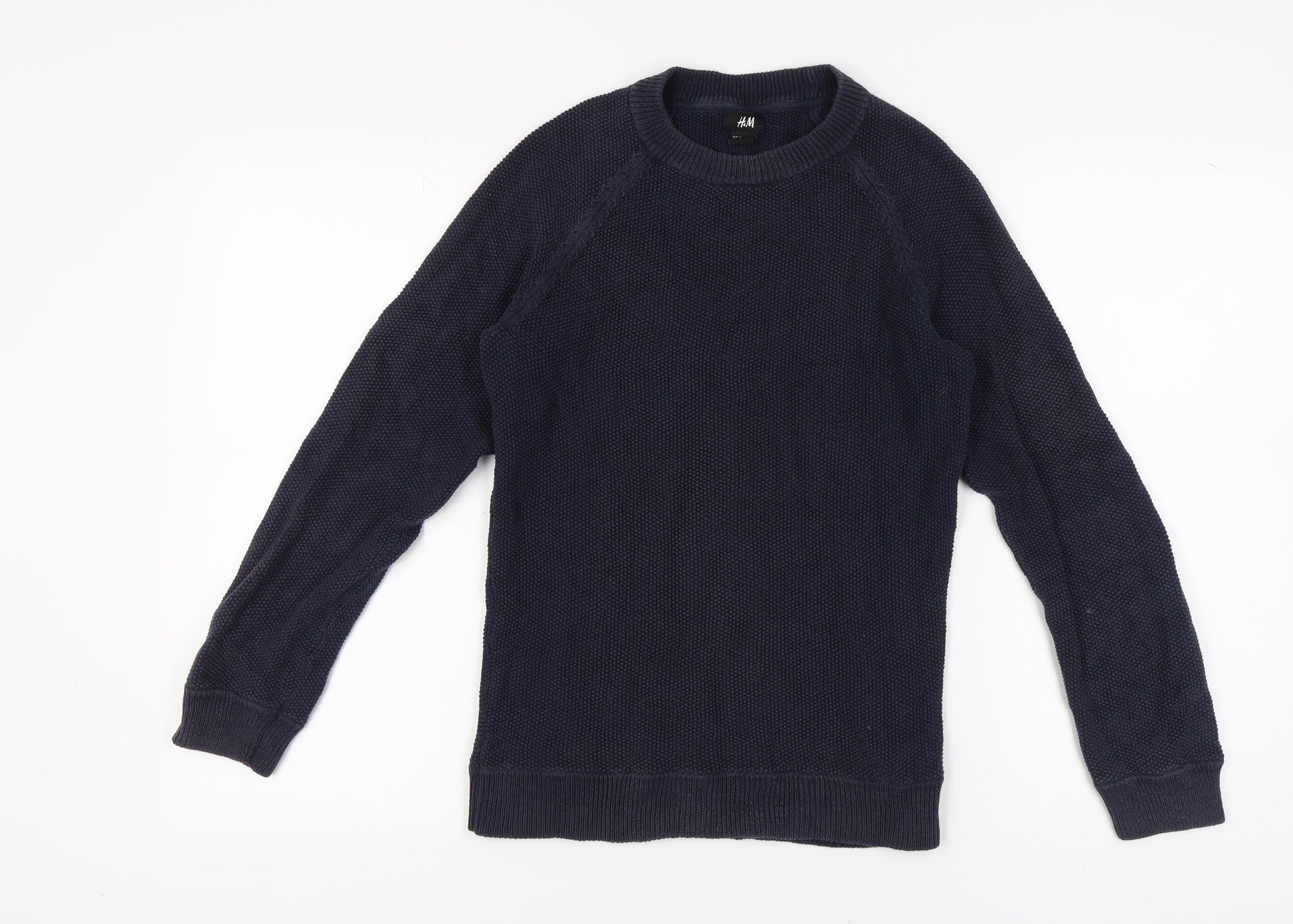 H&M Men's Black Pullover Jumper, Size S, Chunky Knit