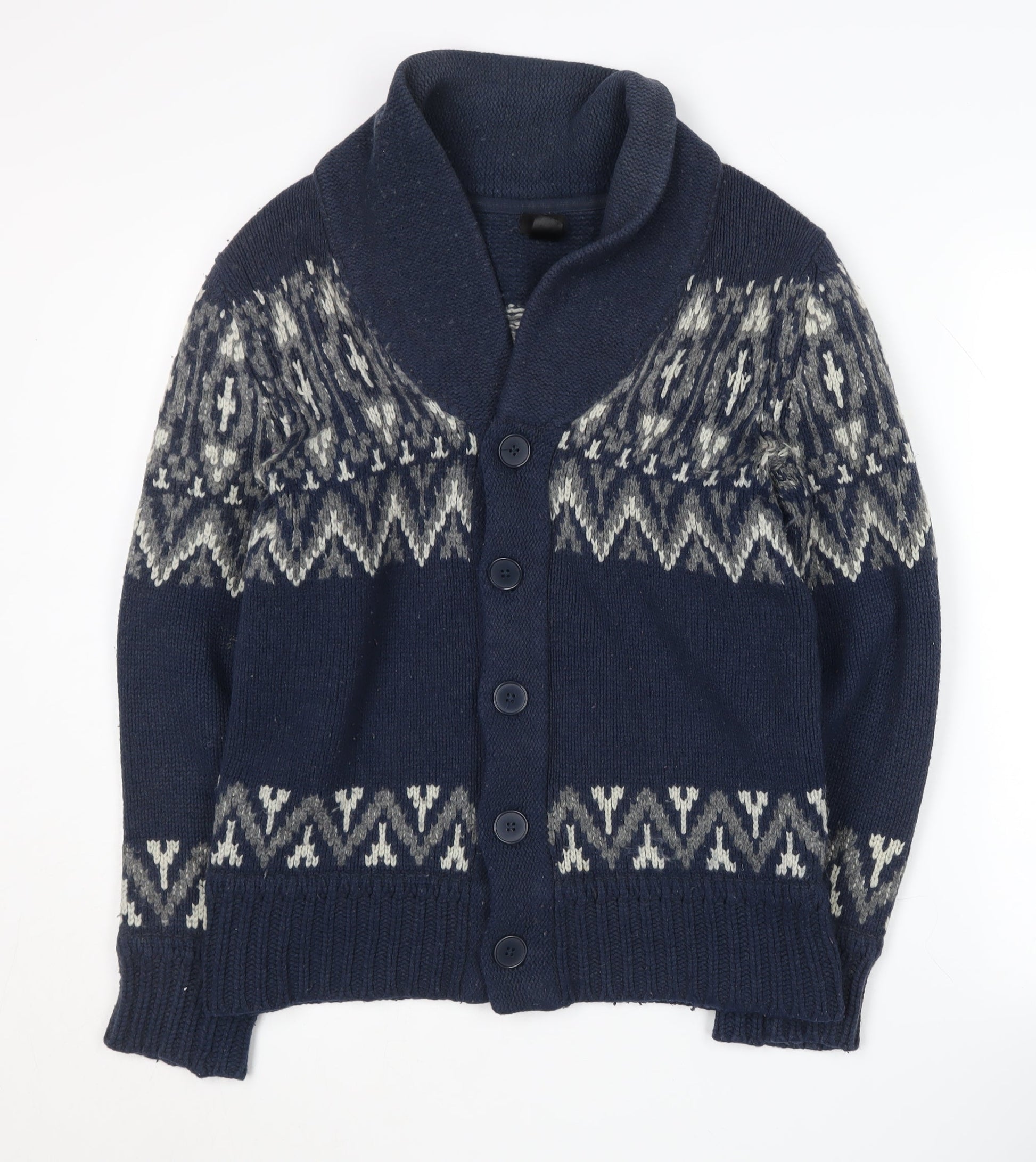 H&M Men's Blue Cardigan, Size M, Fair Isle Pattern