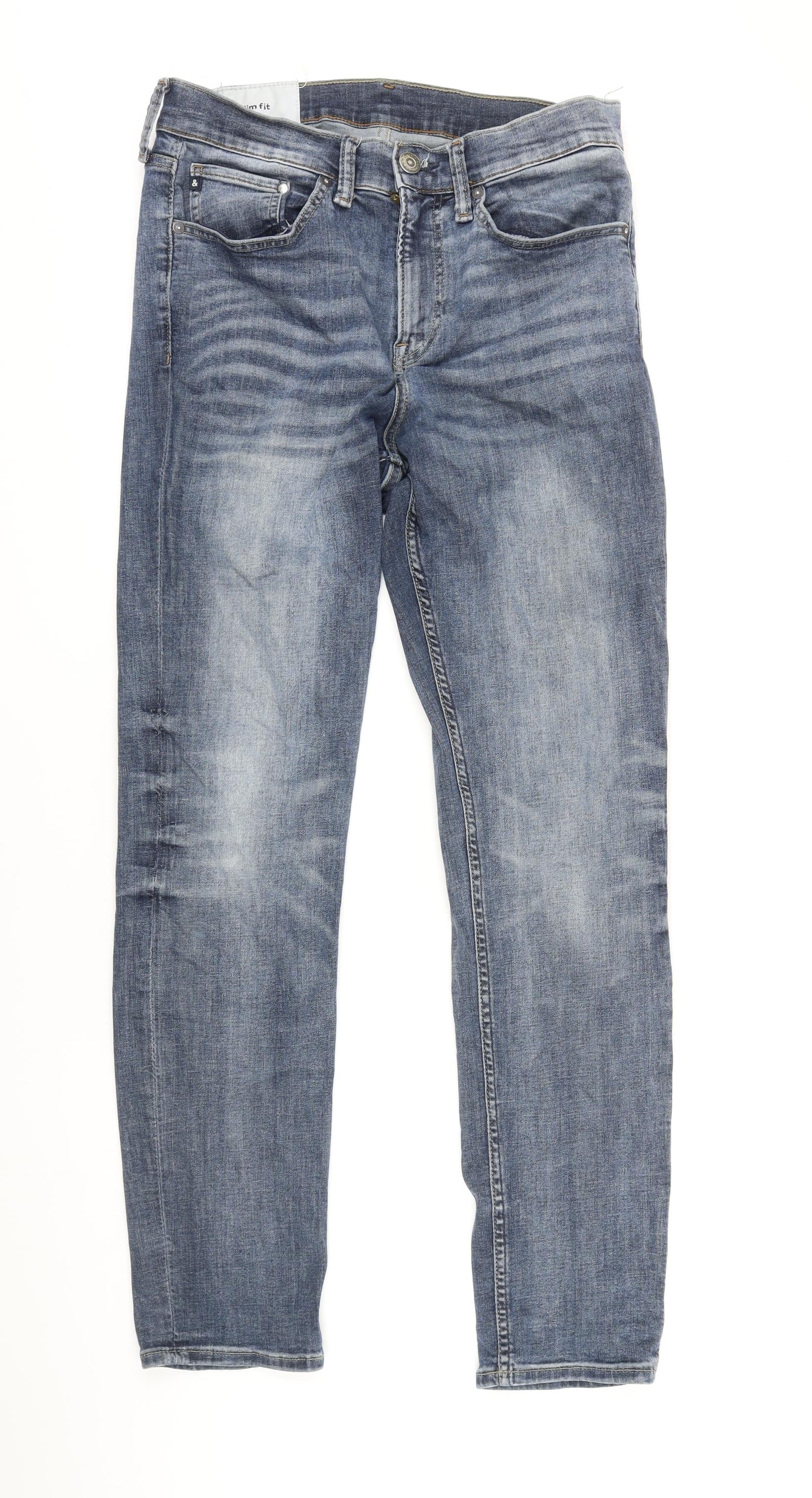H&M Mens Blue Cotton Tapered Jeans Size 32 in L31 in Regular Zip