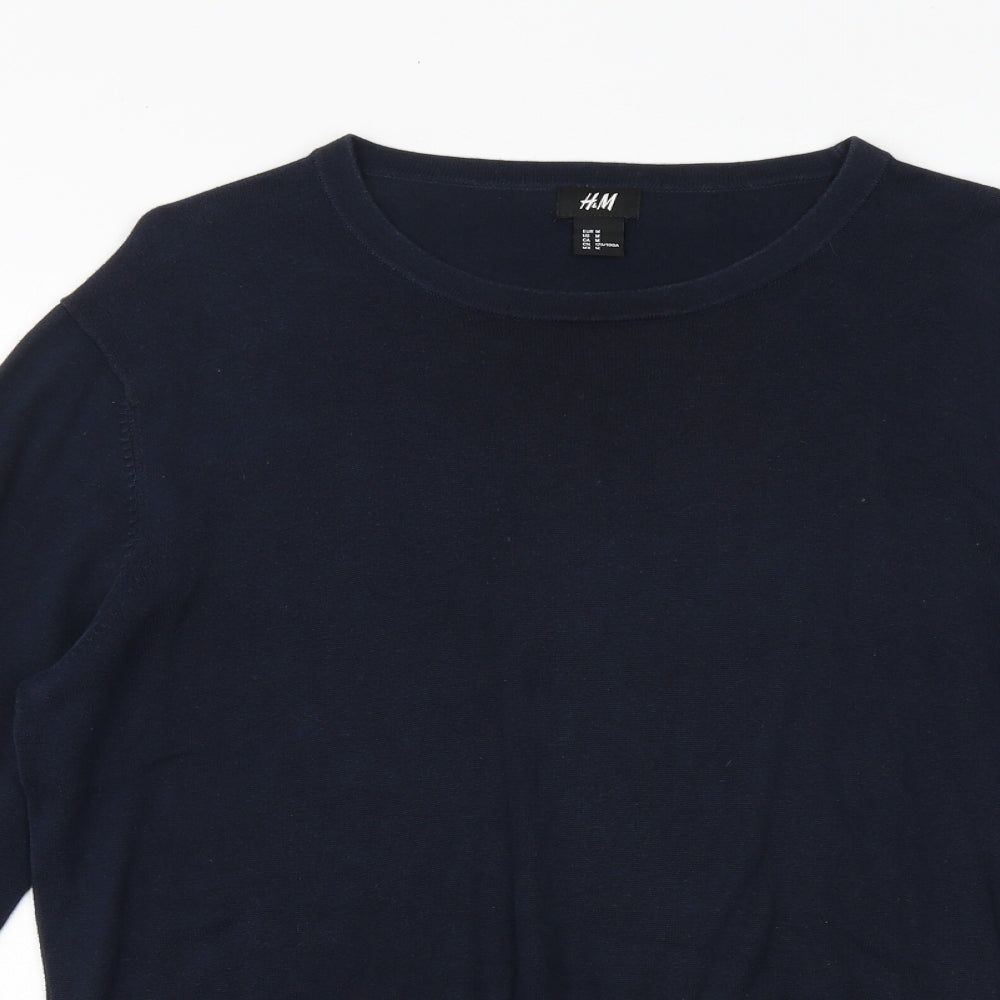H&M Mens Blue Round Neck Cotton Pullover Jumper Size M Long Sleeve