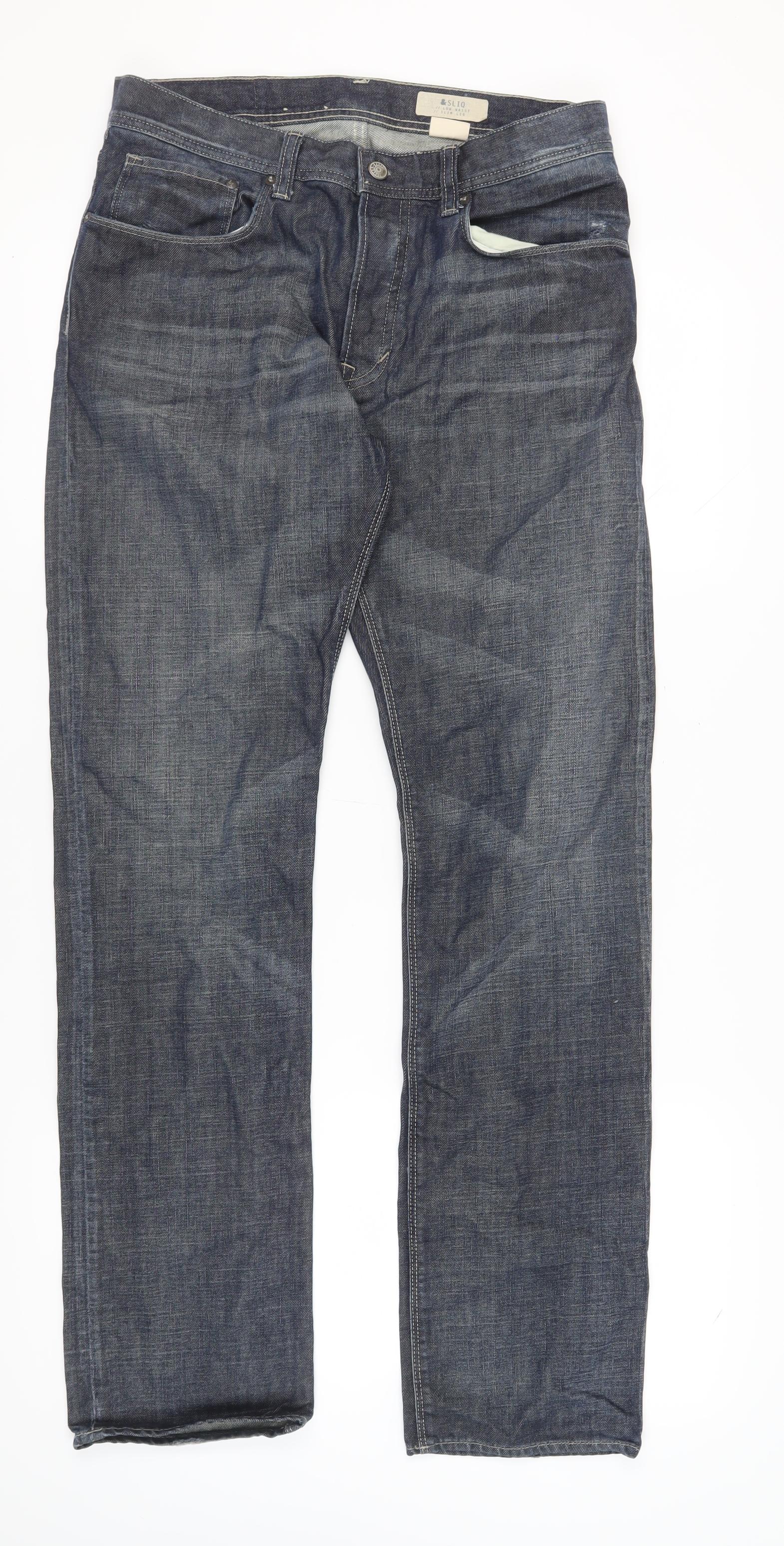 H&M Men's Blue Straight Jeans, Size 33, Dark Denim