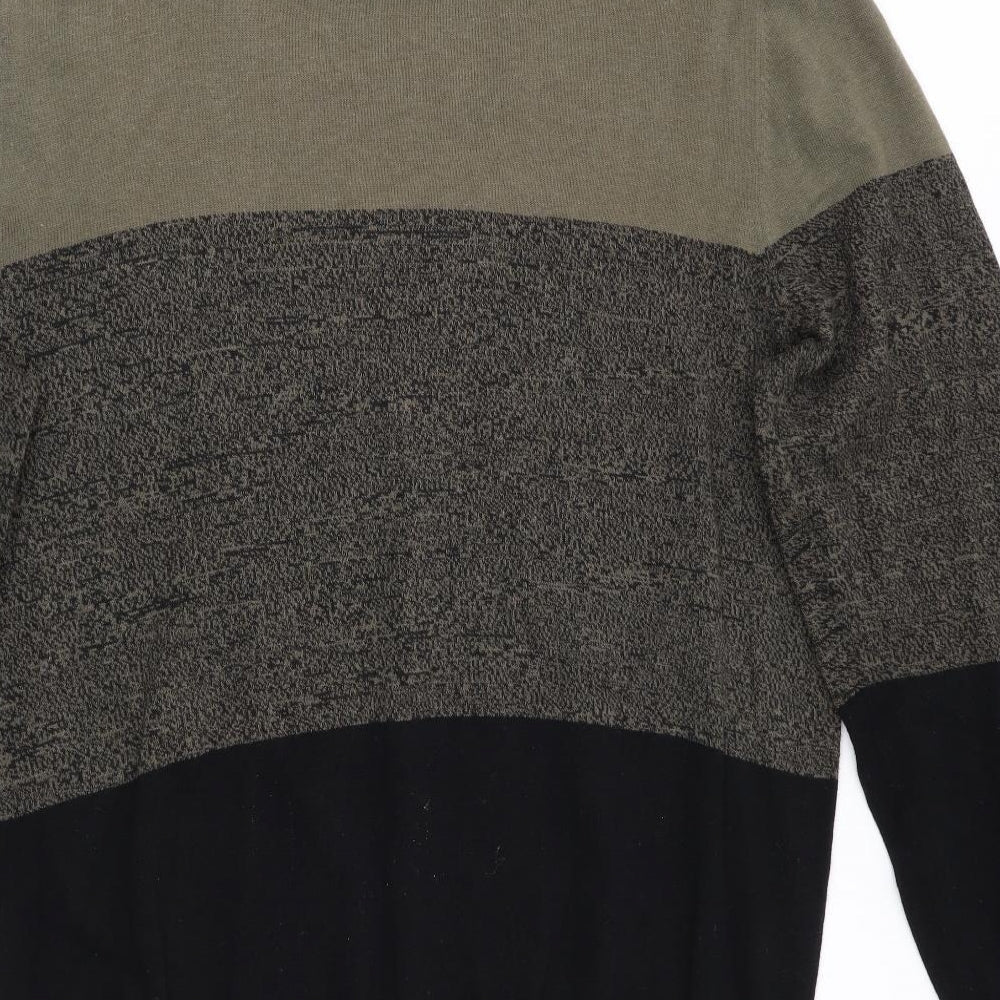 H&M Mens Green Striped Pullover Jumper Size L