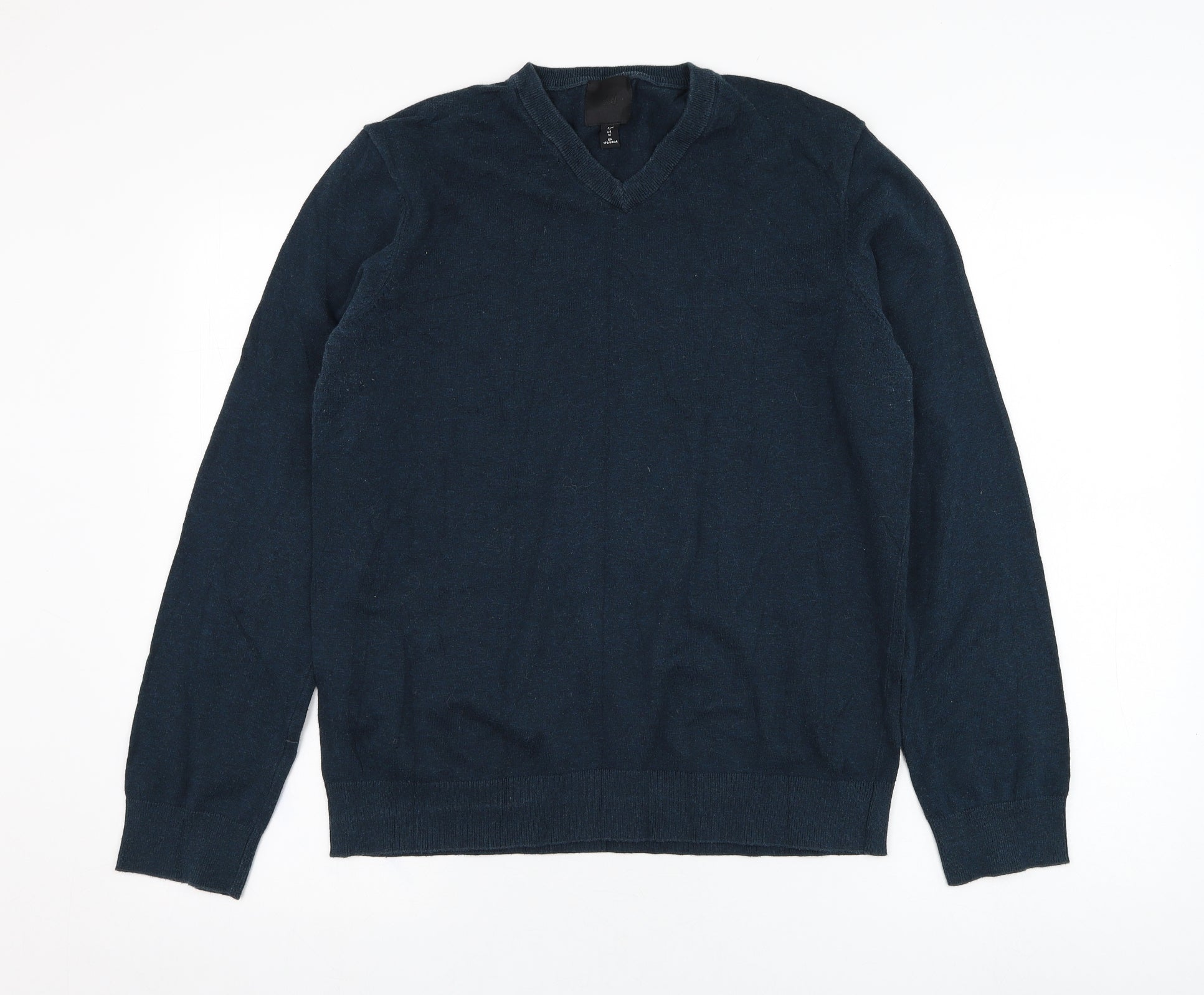 H&M Mens Green V-Neck Cotton Pullover Jumper Size M