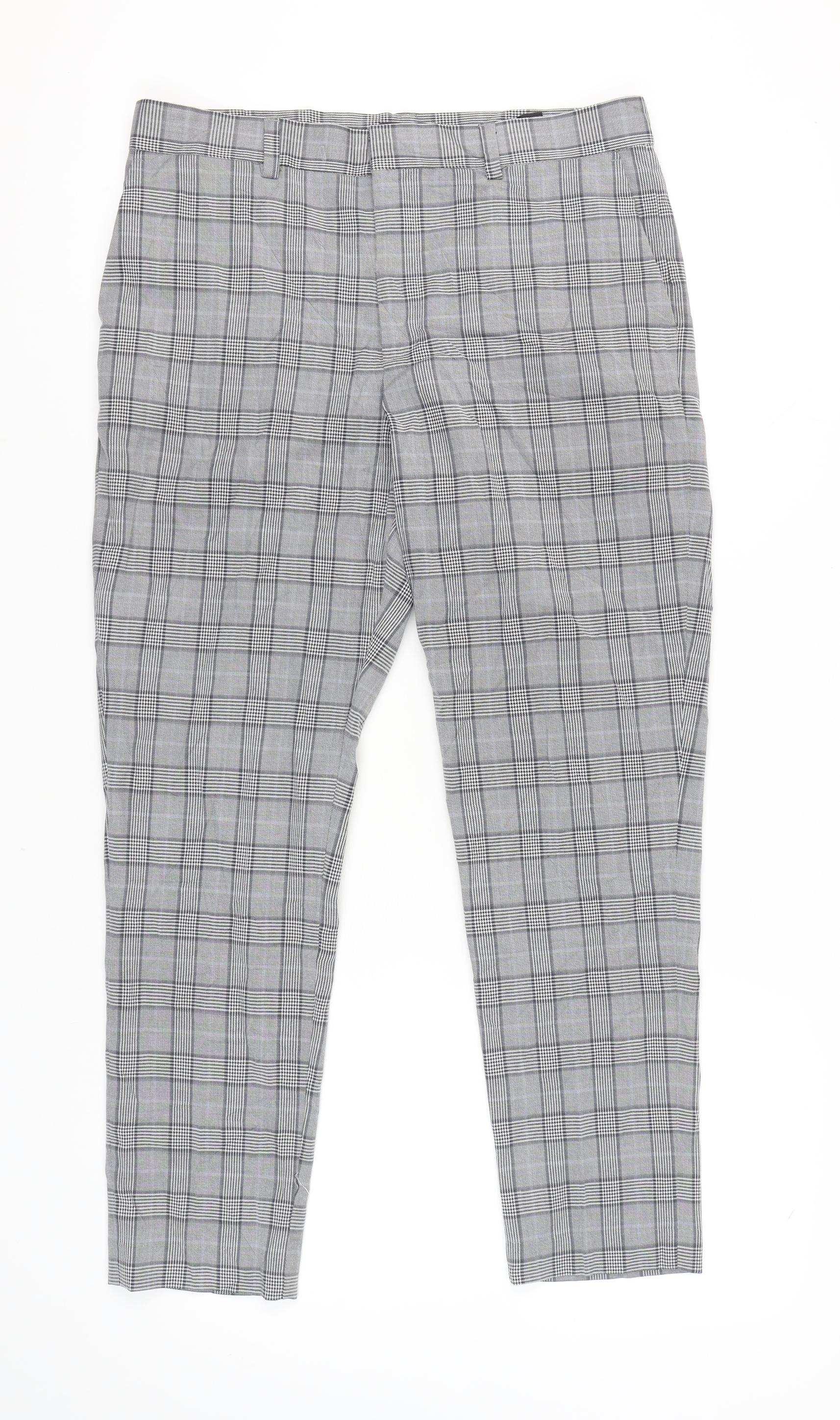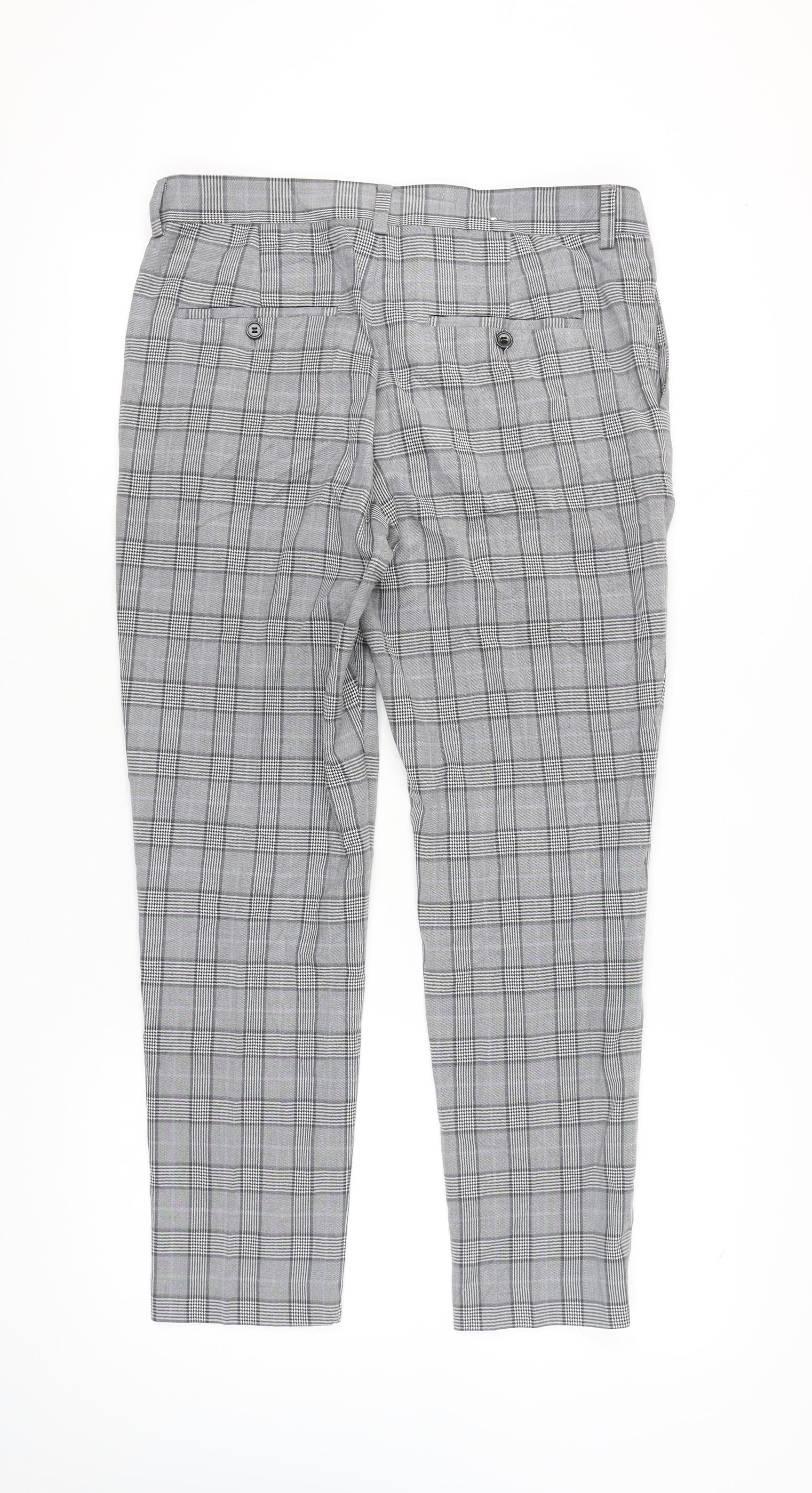 H&M Mens Grey Check Slim Fit Chino Trousers Size 33 Straight Leg