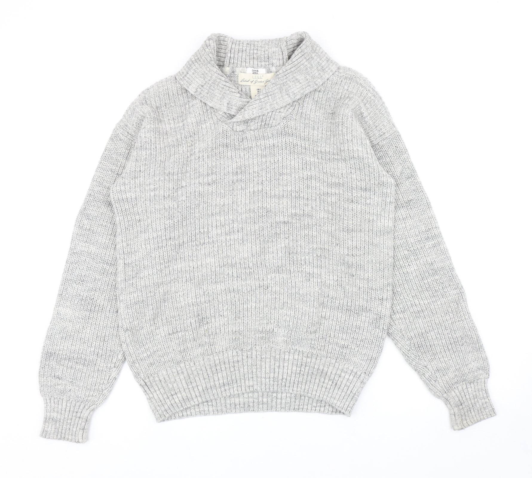 H&M Mens Grey Collared Cotton Pullover Jumper Size S