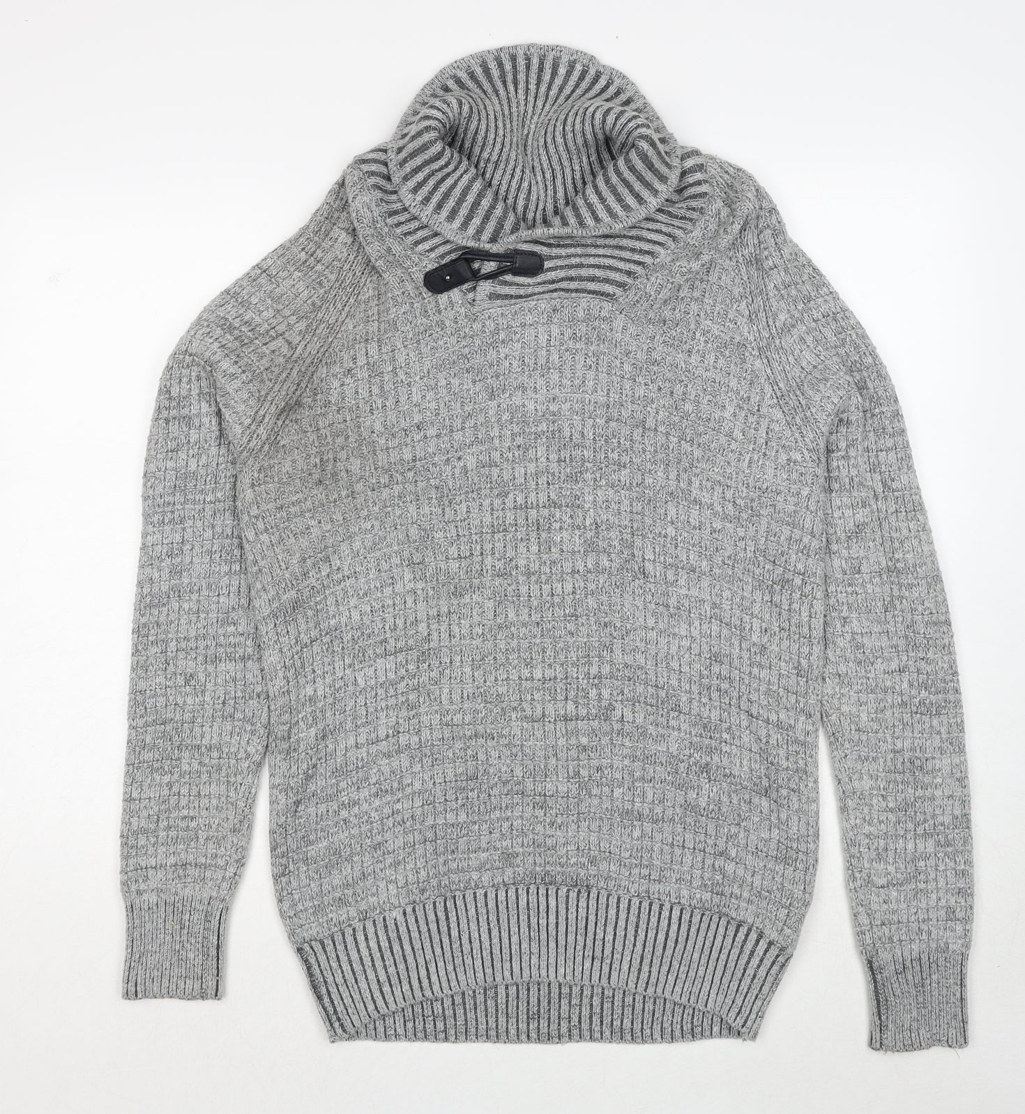 H&M Mens Grey Collared Cotton Pullover Jumper Size S Long Sleeve