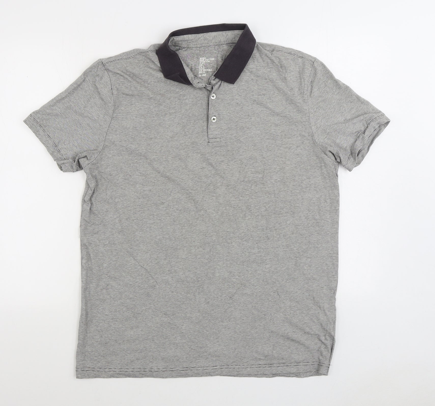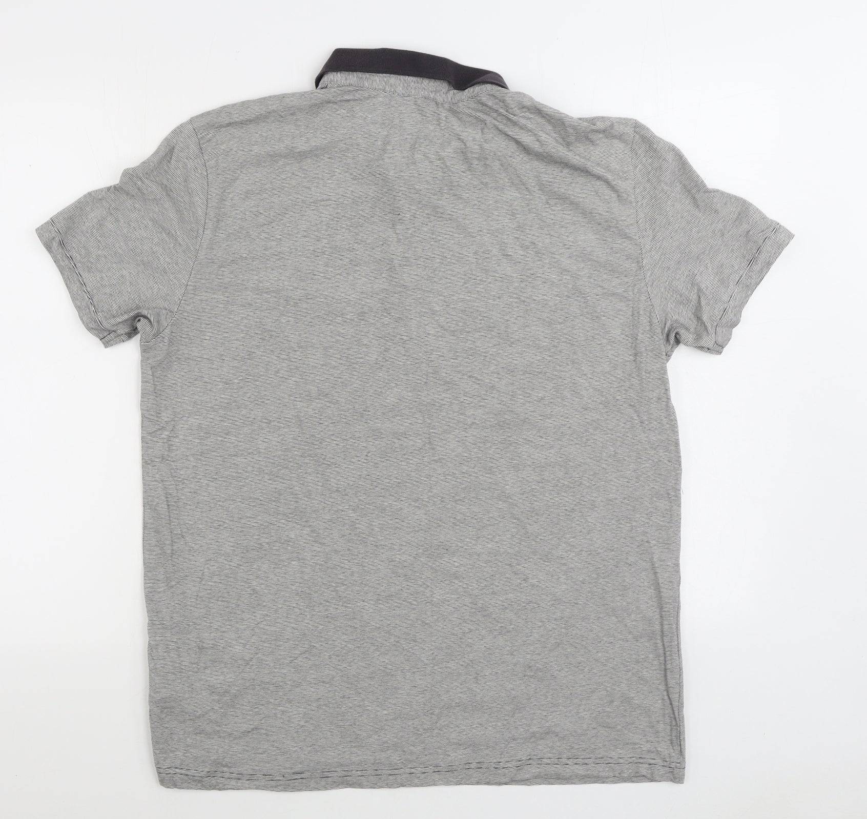 H&M Mens Grey Cotton Polo Size L Collared Button