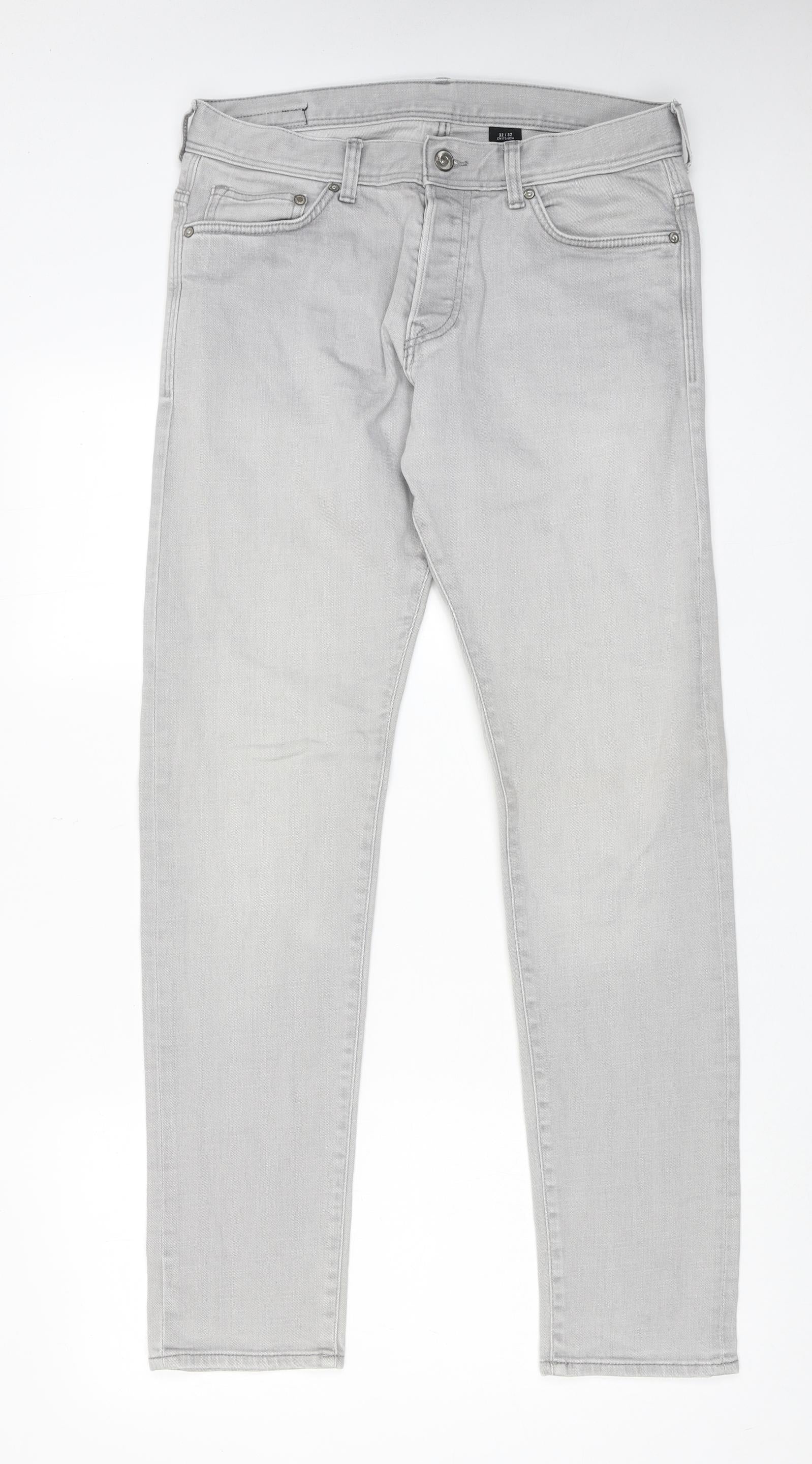 H&M Mens Grey Cotton Straight Jeans Size 32 in L32 in Regular Button