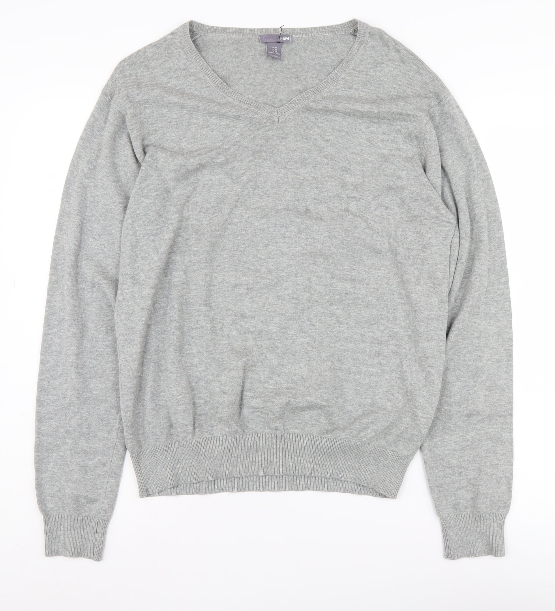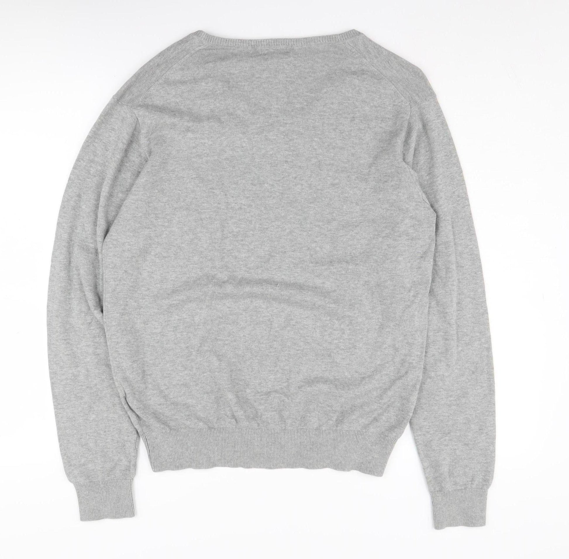 H&M Men's Grey Cotton V-Neck Pullover Jumper M