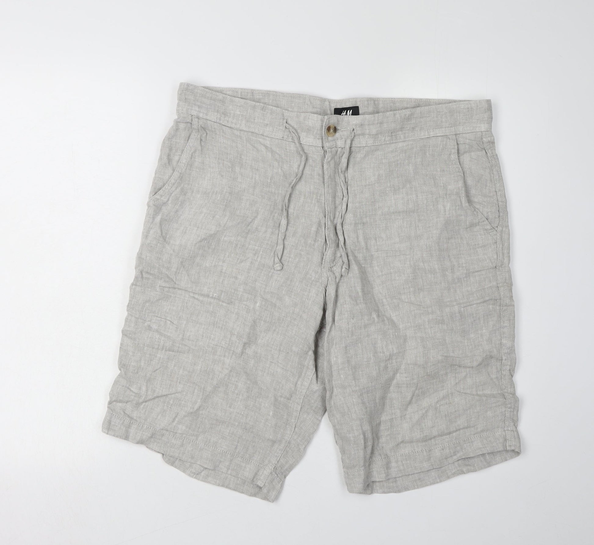 H&M Men's Grey Linen Chino Shorts Size 34 Regular Fit