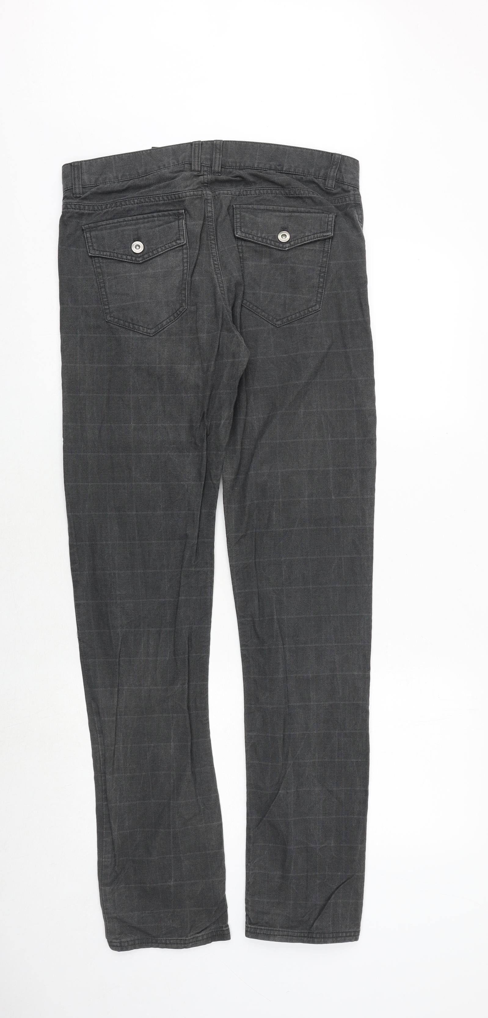 H&M Mens Grey Plaid Cotton Trousers Size 32 in Regular Zip