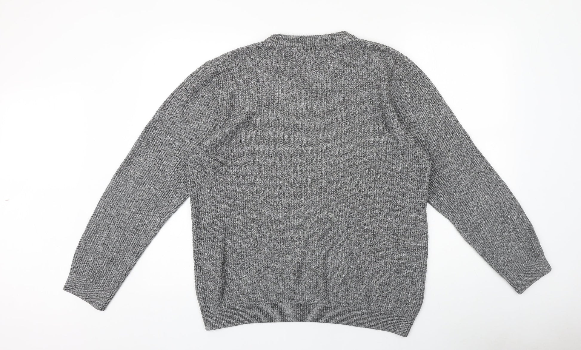 H&M Mens Grey Round Neck Acrylic Pullover Jumper Size M Long Sleeve