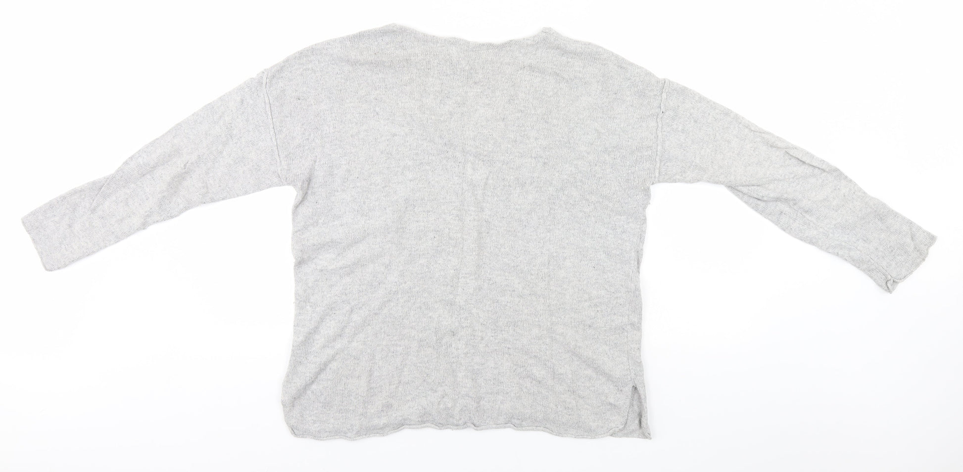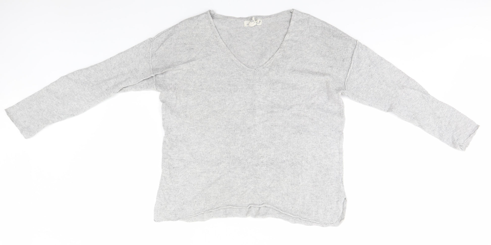 H&M Mens Grey V-Neck Cotton Pullover Jumper Size M