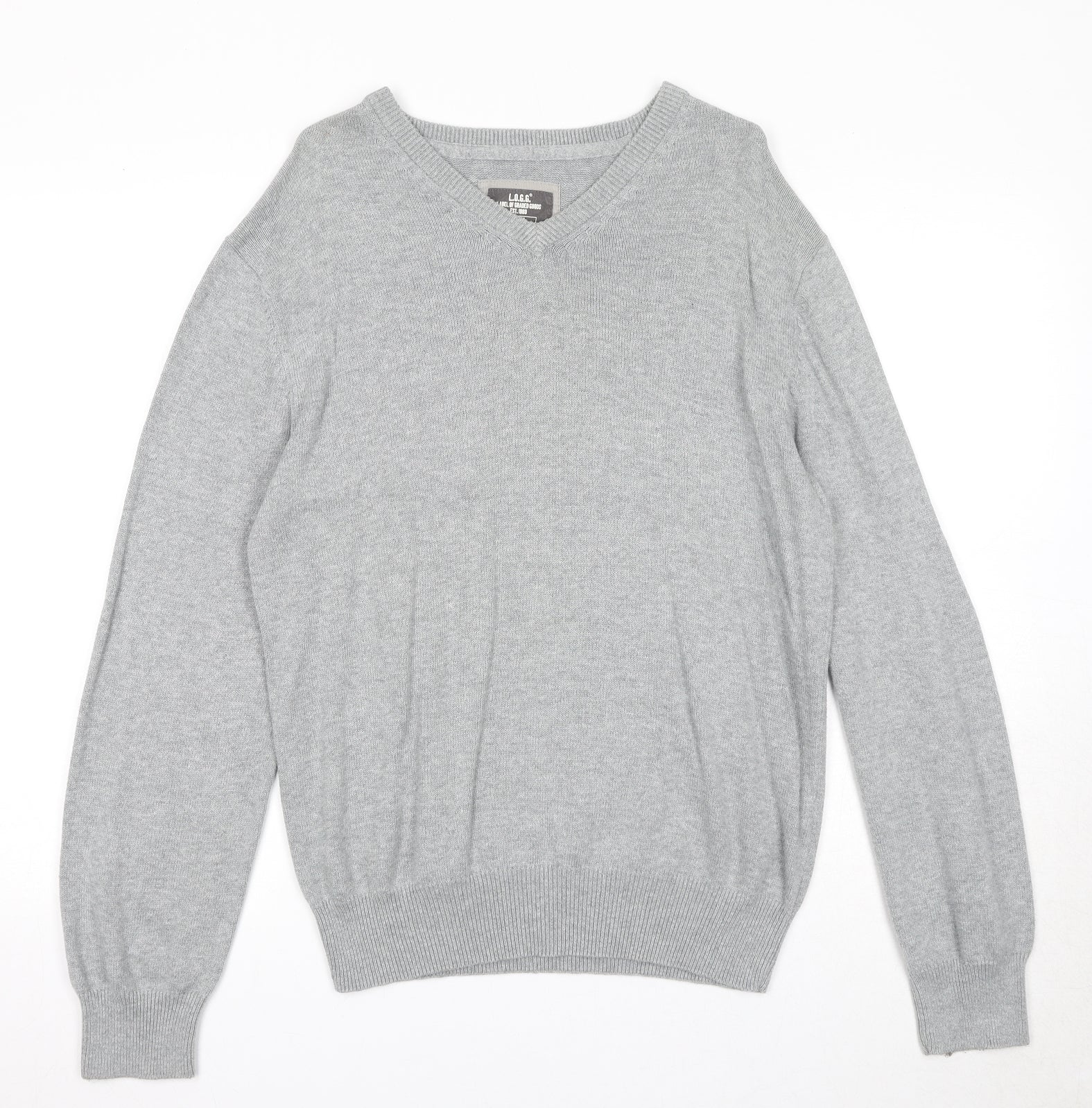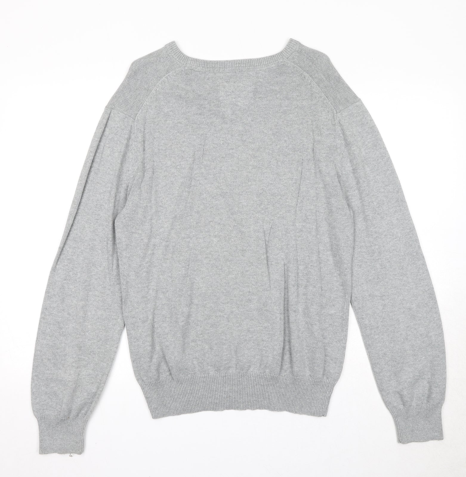 H&M Mens Grey V-Neck Cotton Pullover Jumper Size M Long Sleeve