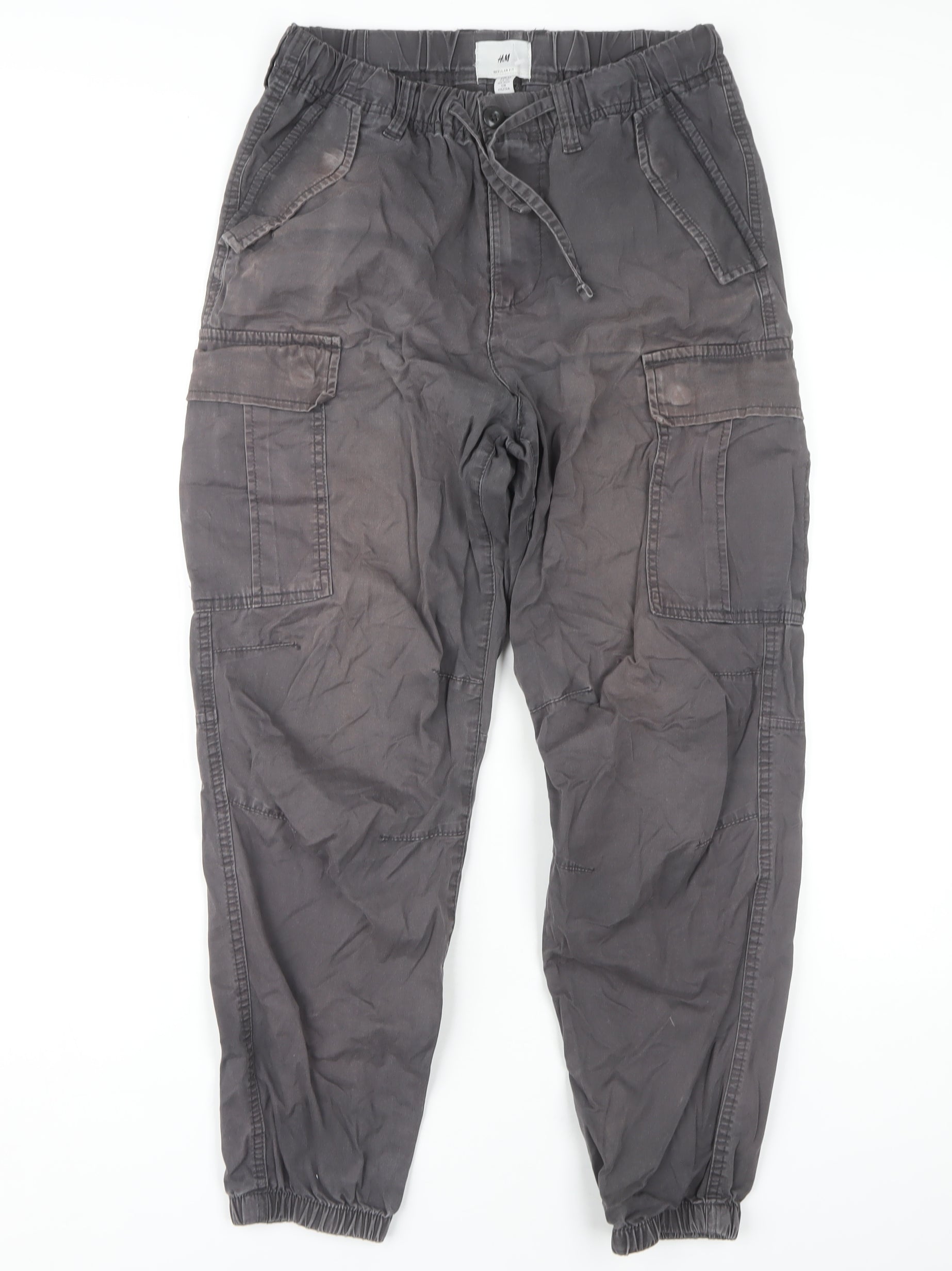 H&M Men's Grey XS Cargo Trousers, Regular Fit