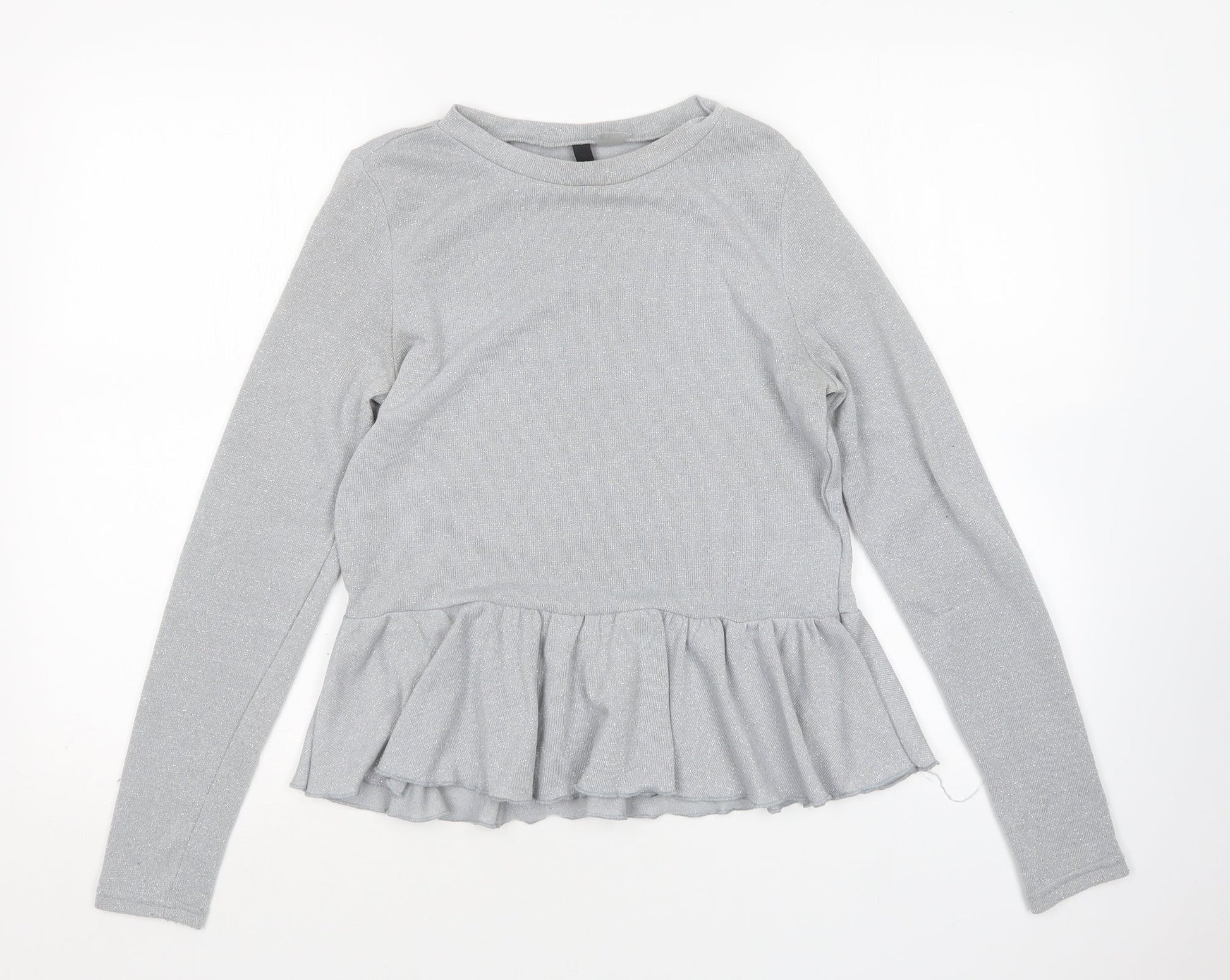 H&M Mens Silver Round Neck Polyester Pullover Jumper Size M