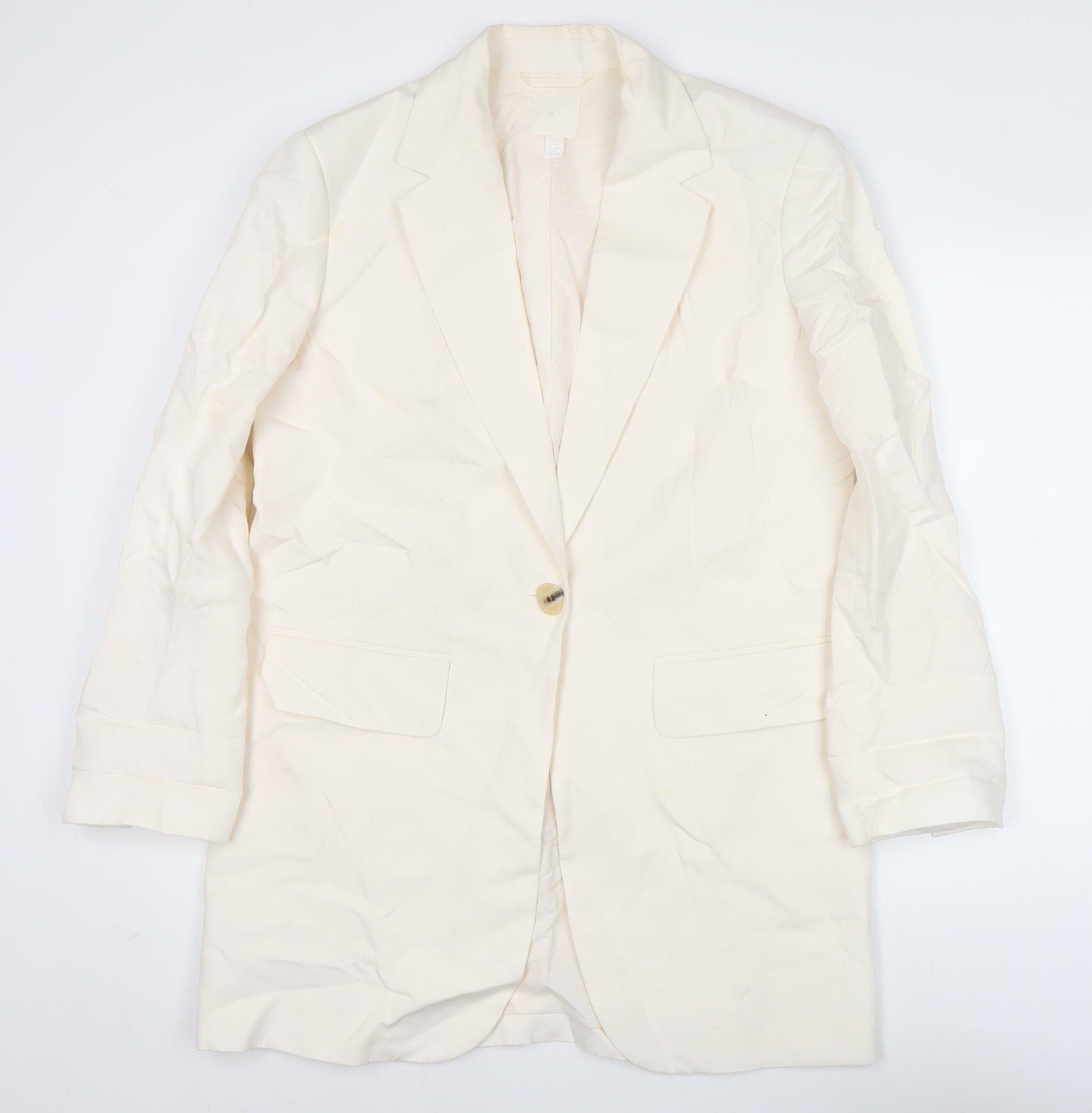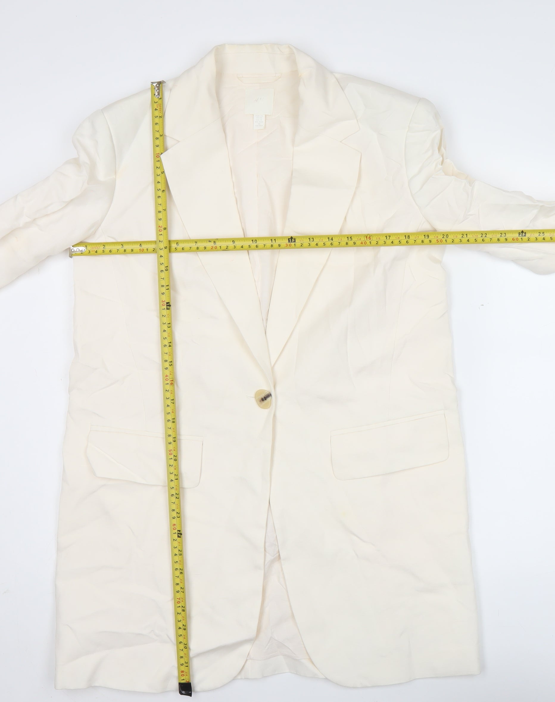 H&M Unisex Adults Ivory XS Long Linen Blend Blazer Jacket
