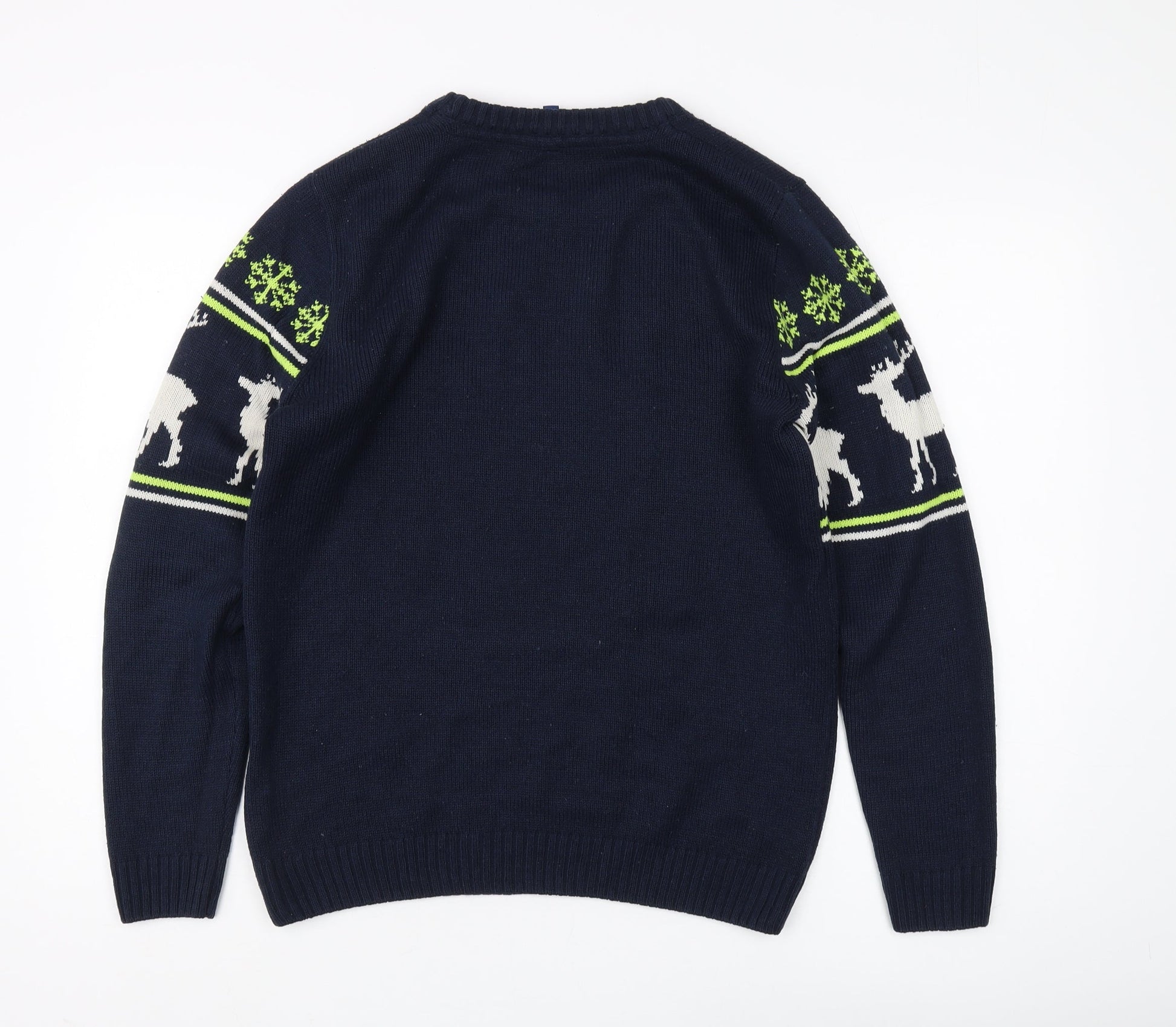 H&M Unisex Blue Reindeer Winter Pullover Jumper S