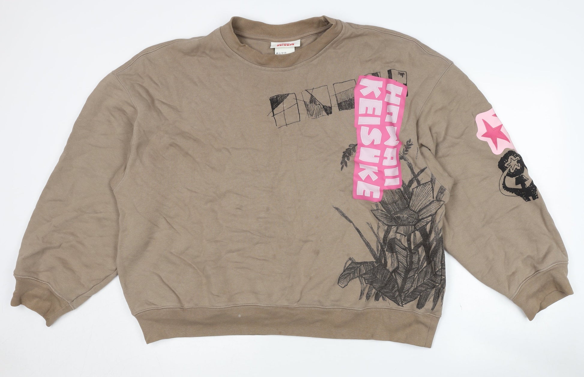 H&M Unisex Brown Pullover Sweatshirt L - Graphic Print Casual