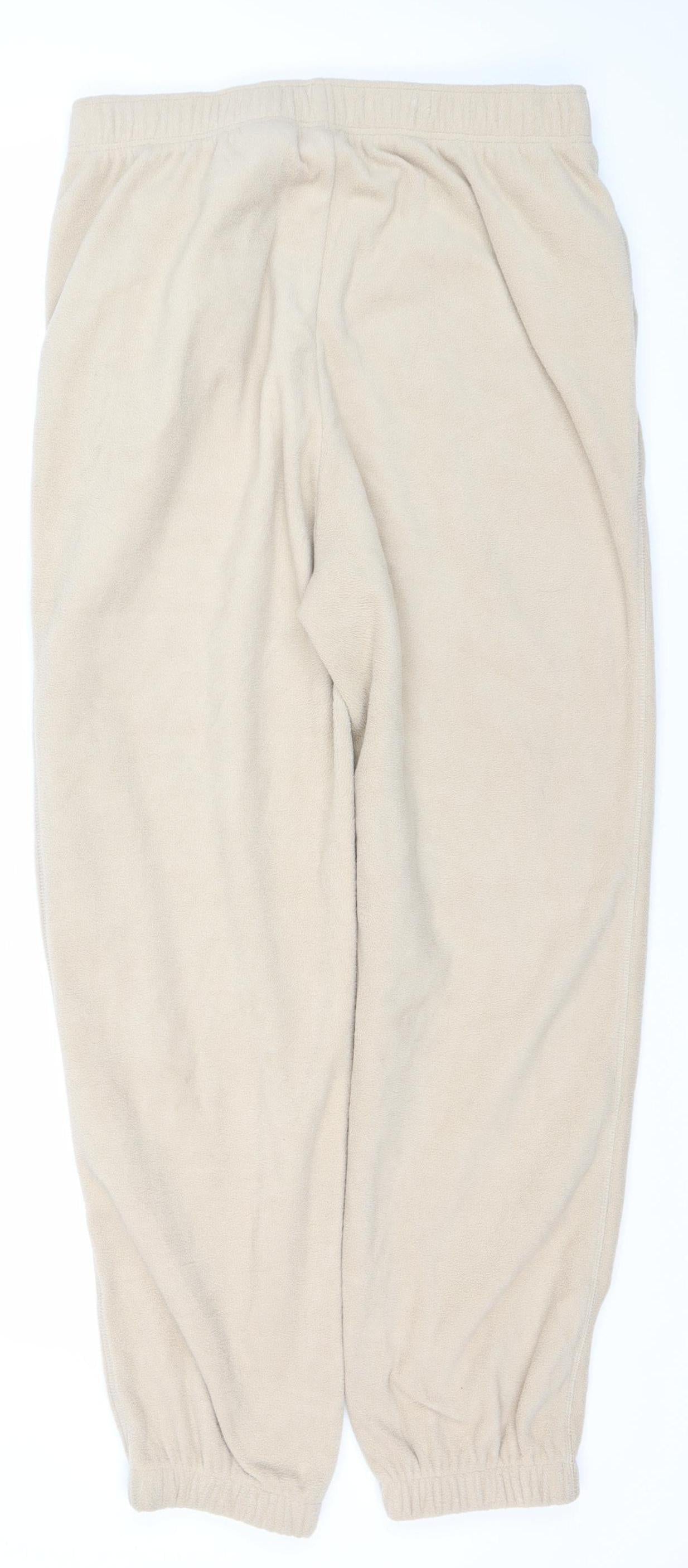 H&M Women Beige Fleece Sweatpants Trousers Size 12 Regular Fit