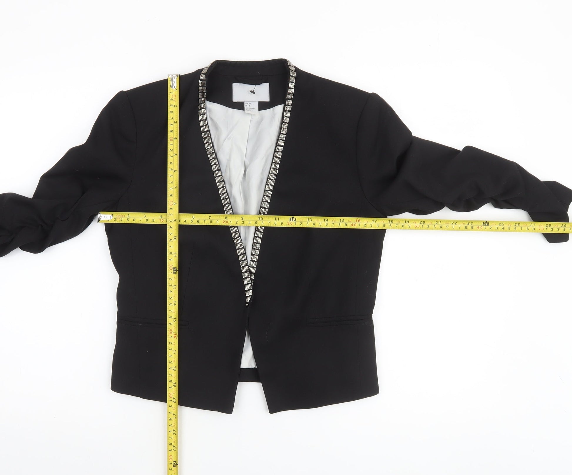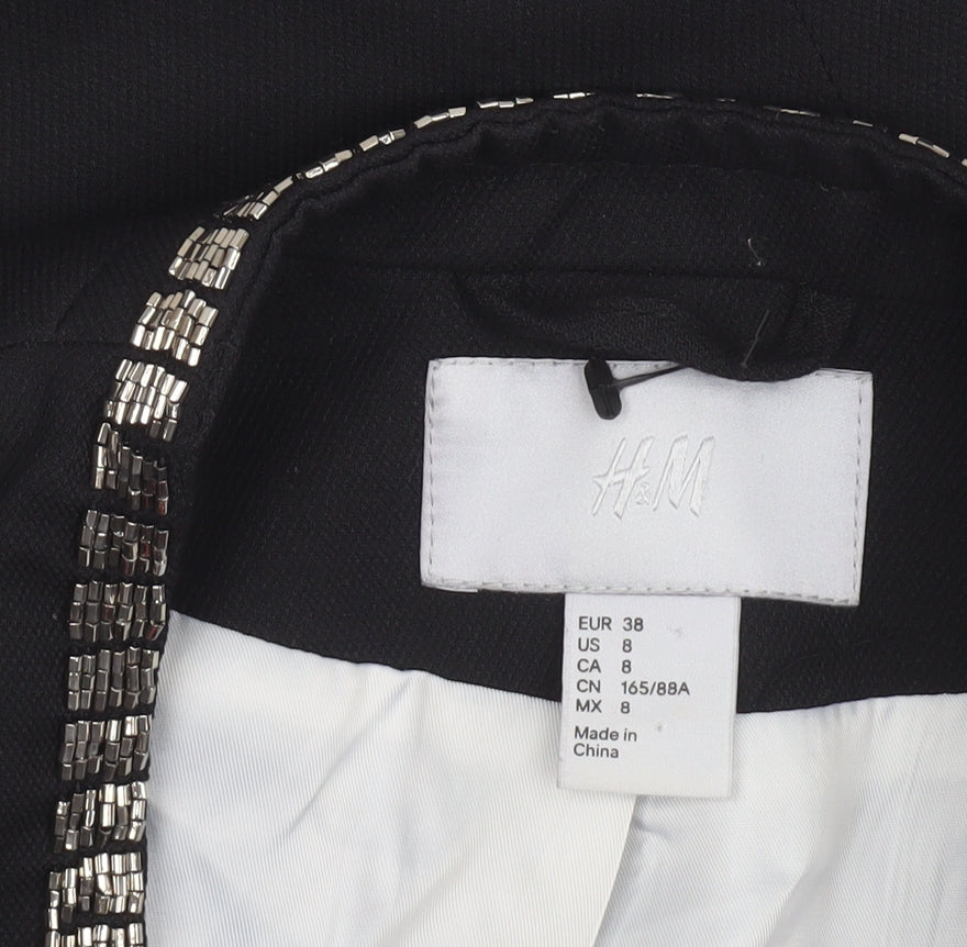 H&M Women Black Beaded Trim Blazer Jacket Size 10 Regular Fit