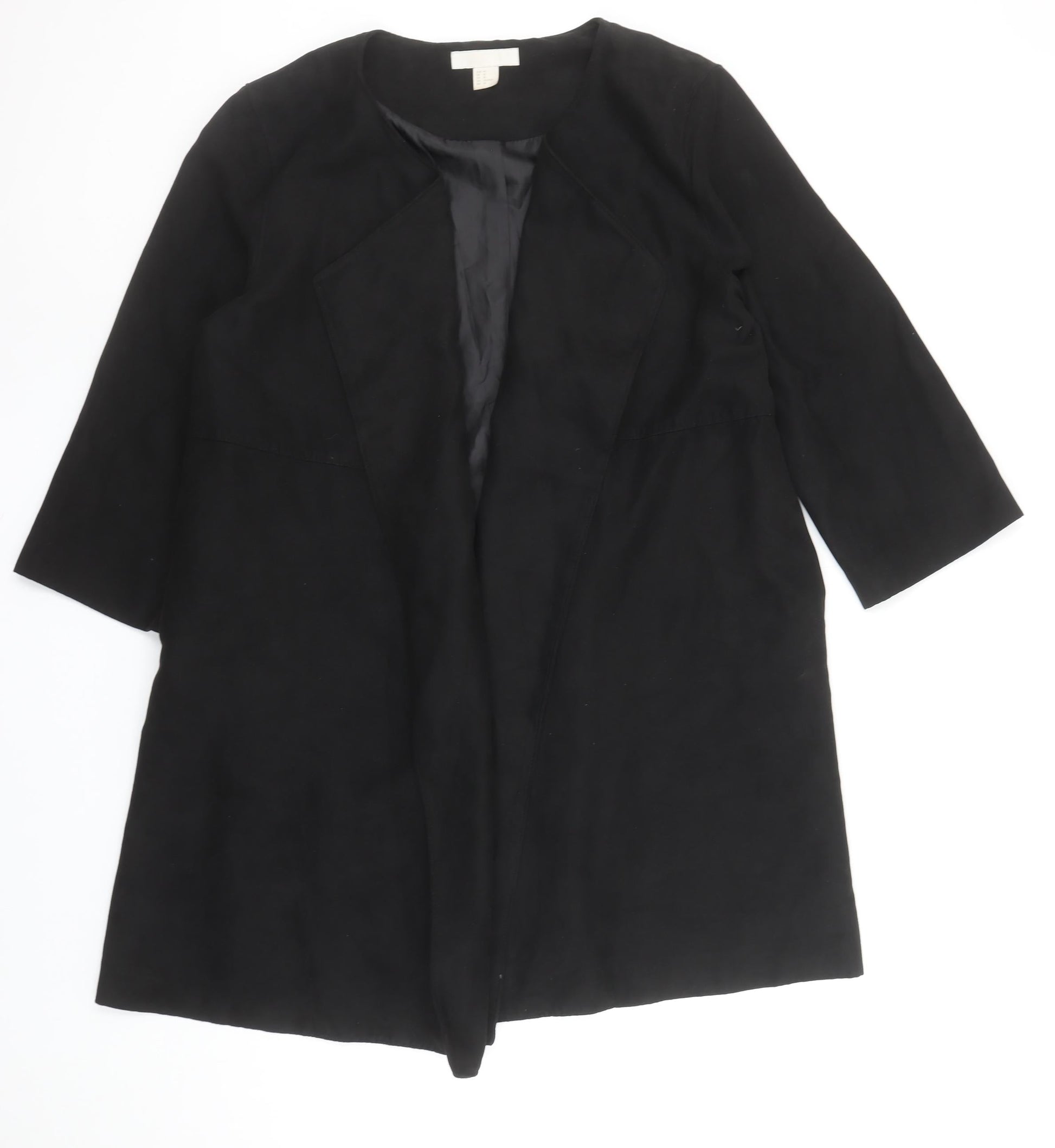 H&M Women Black Mid-Length Open Front Coat Size 12