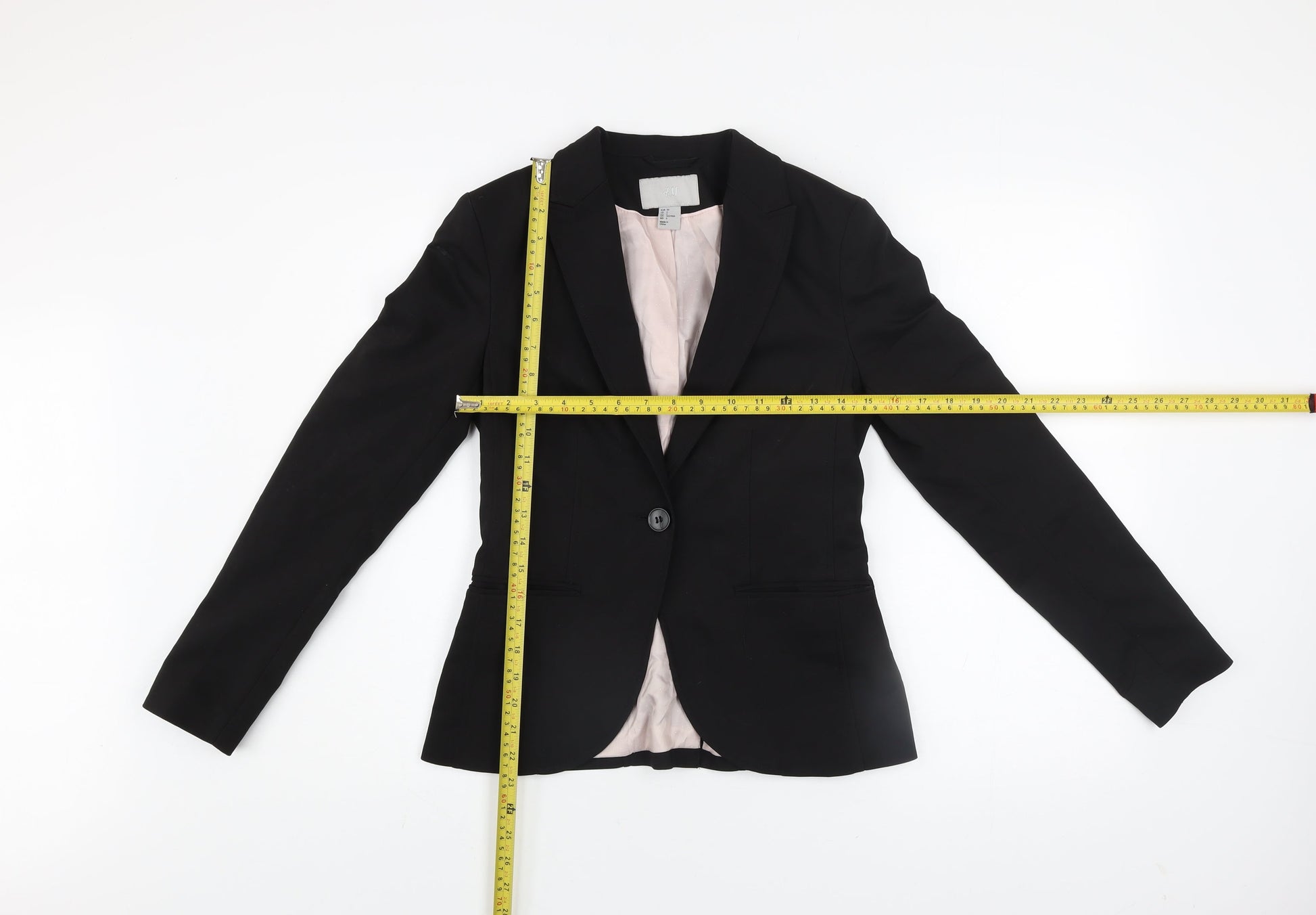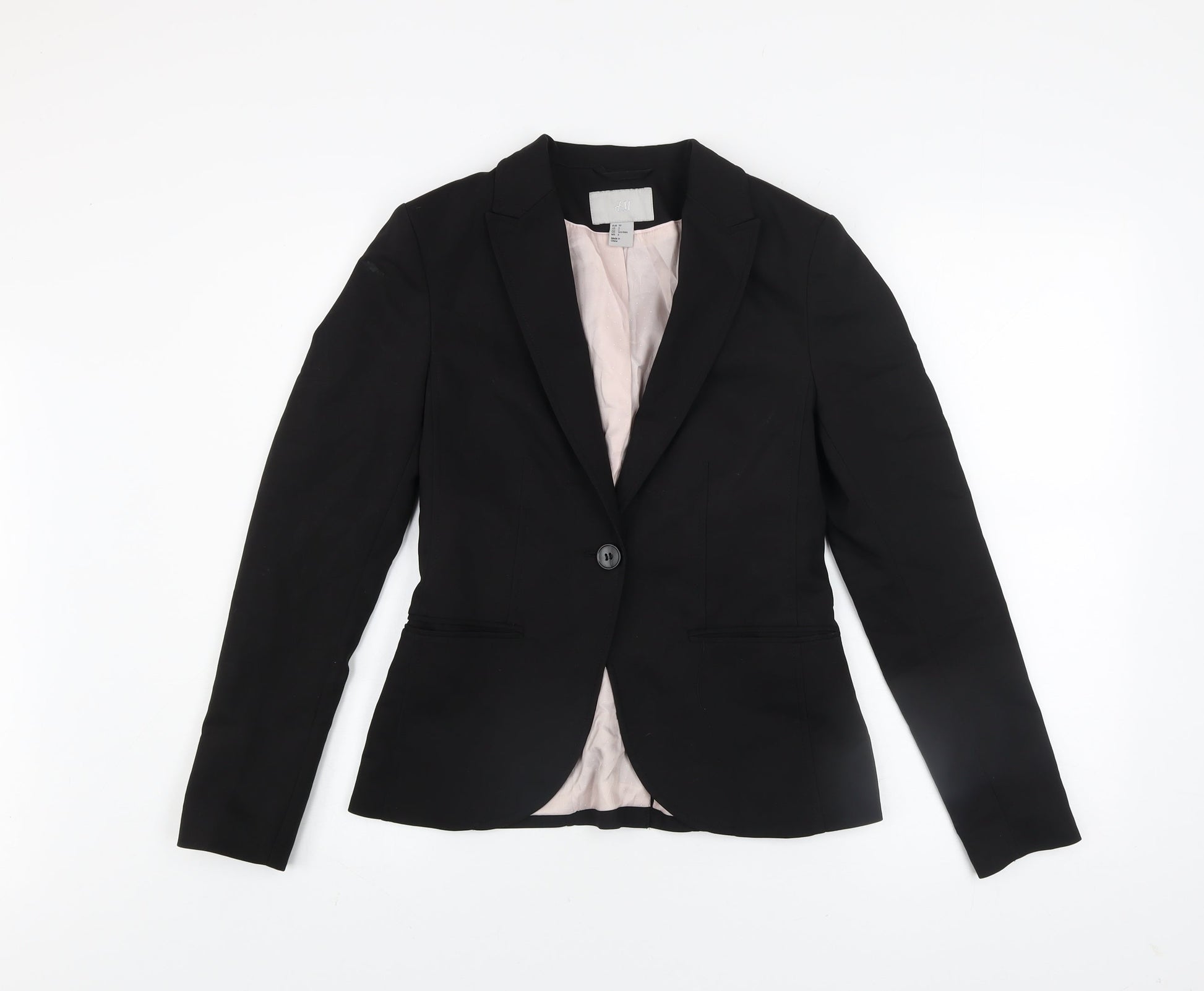 H&M Women Black Single-Breasted Blazer Jacket UK 8 Cotton Blend
