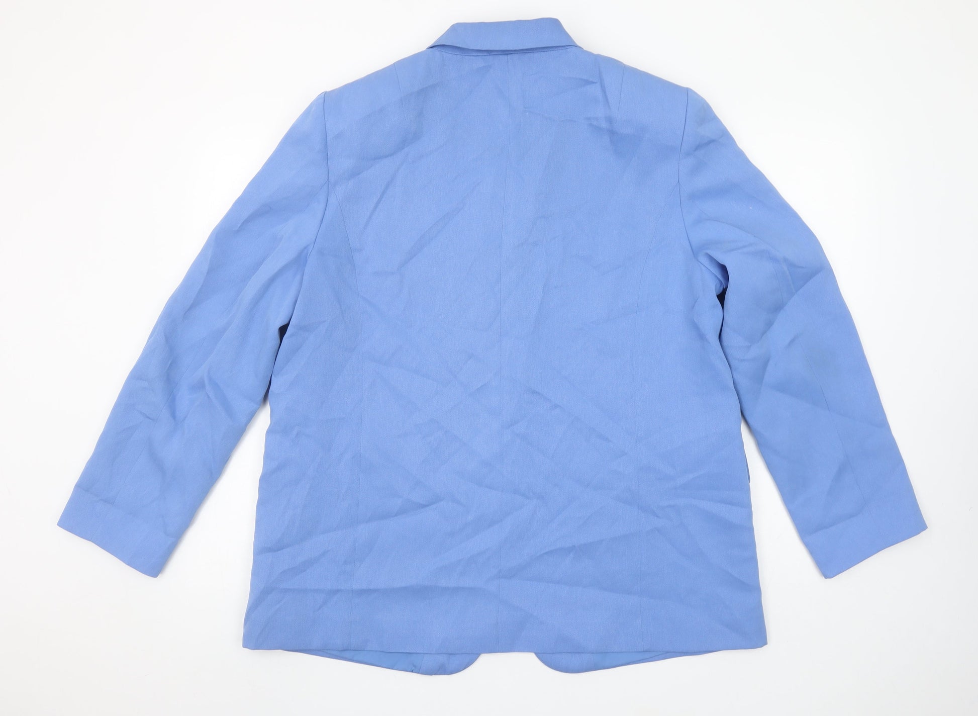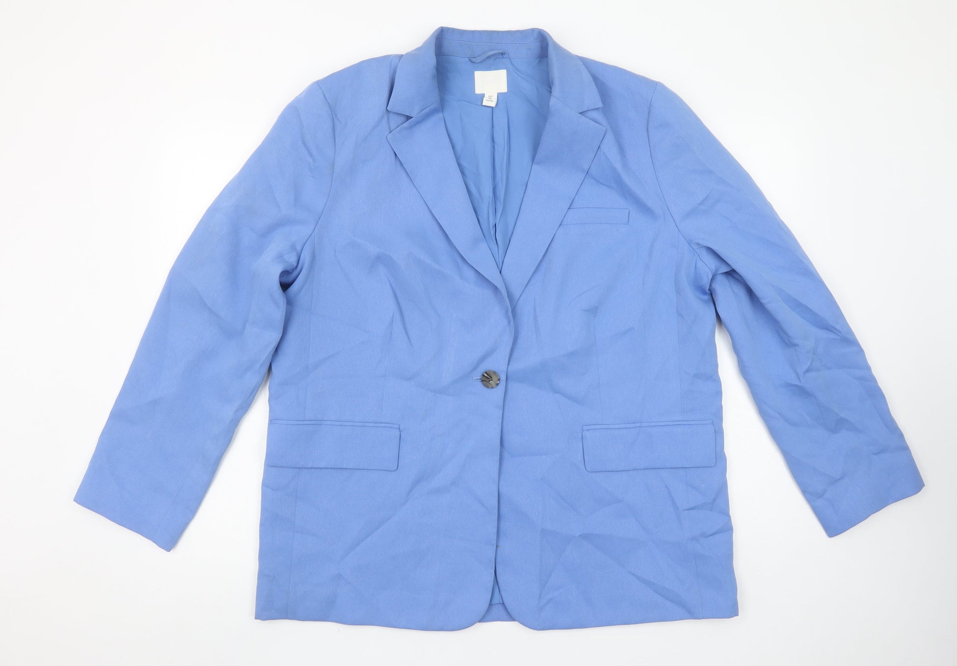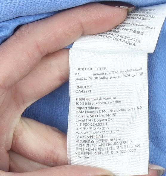 H&M Women Blue Regular Fit Notch Lapel Single-Breasted Blazer Size 16