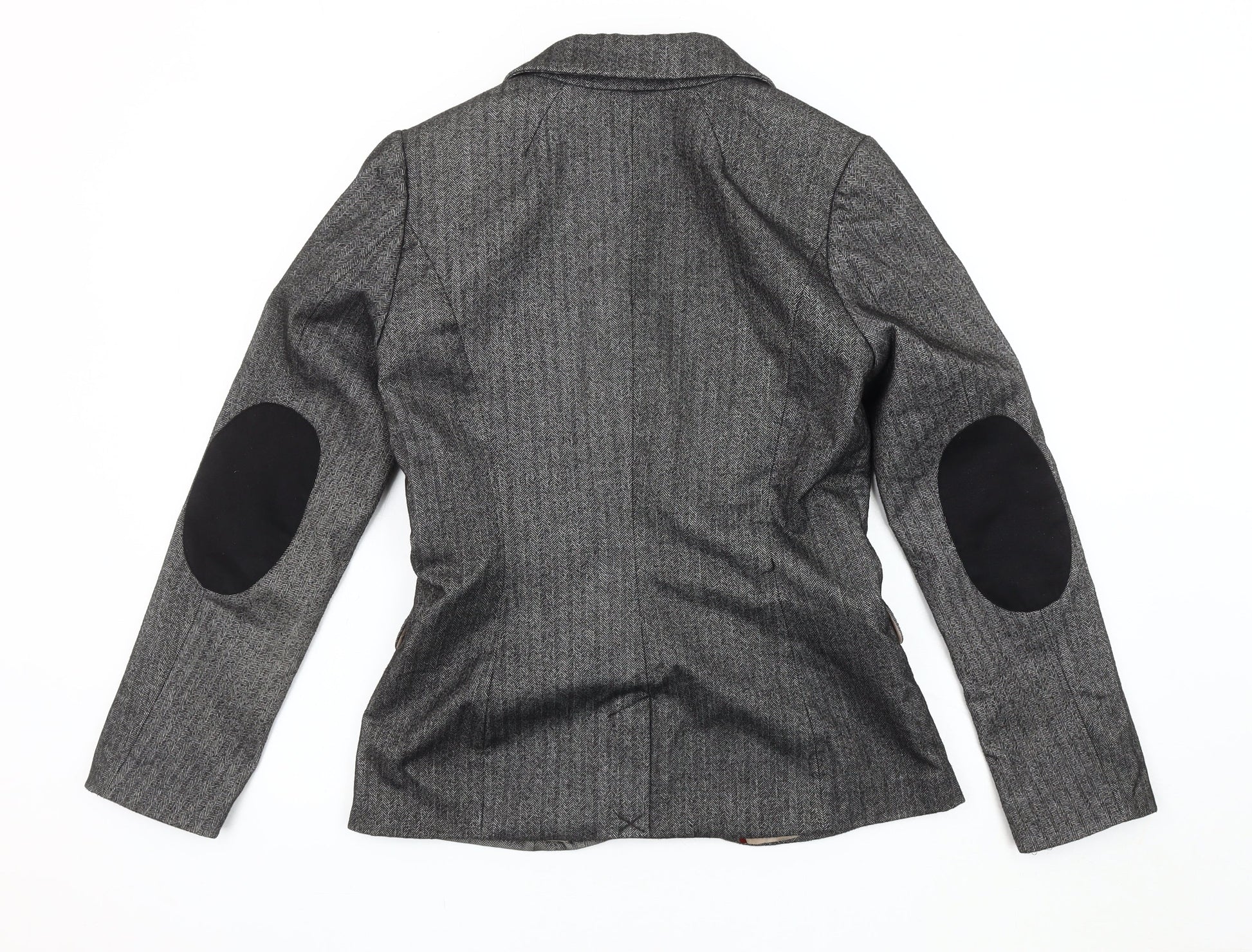 H&M Women Grey Blazer, Size 6, Business Herringbone