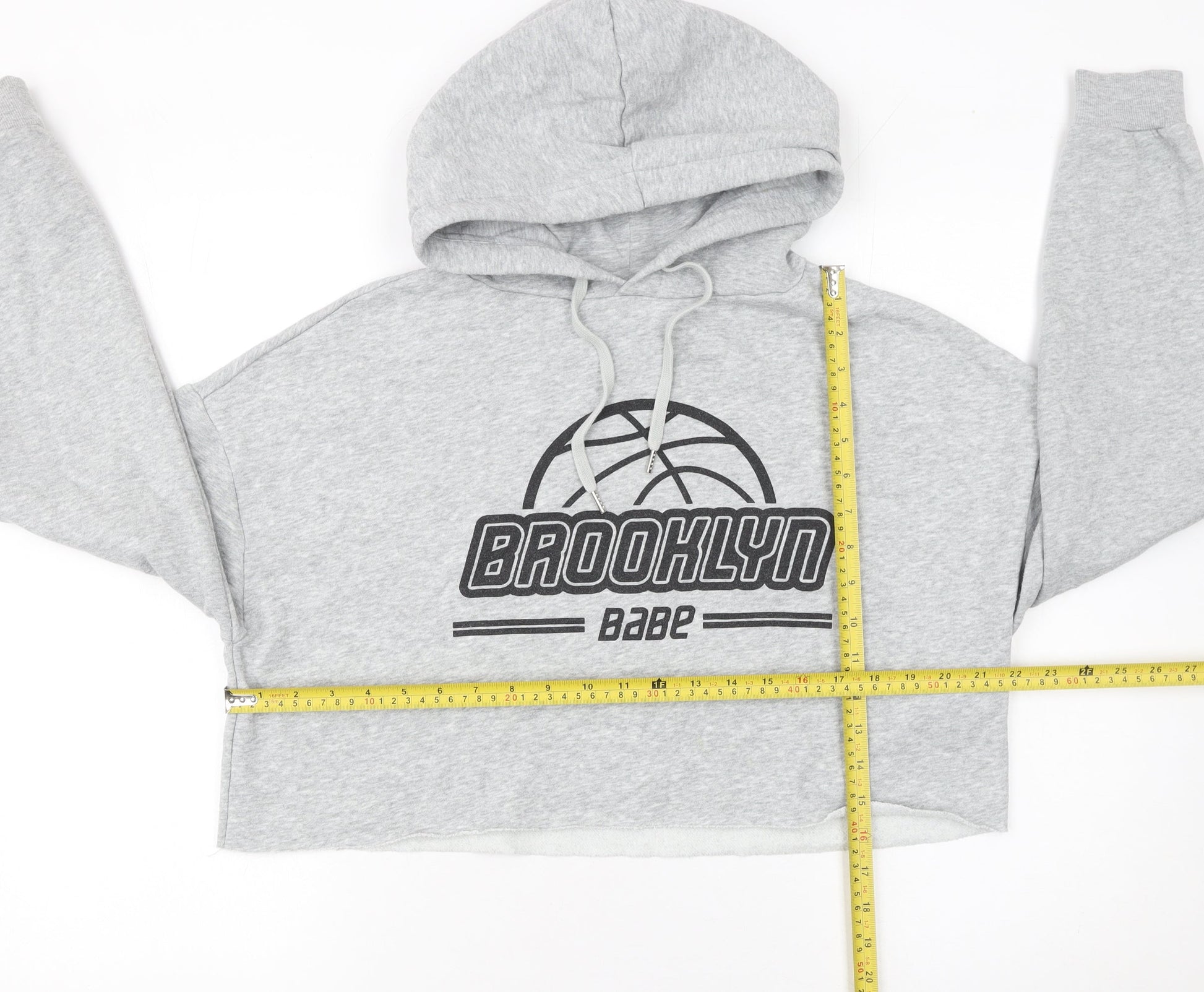 H&M Women Grey Brooklyn Babe Cropped Hoodie Size 12 Cotton Blend