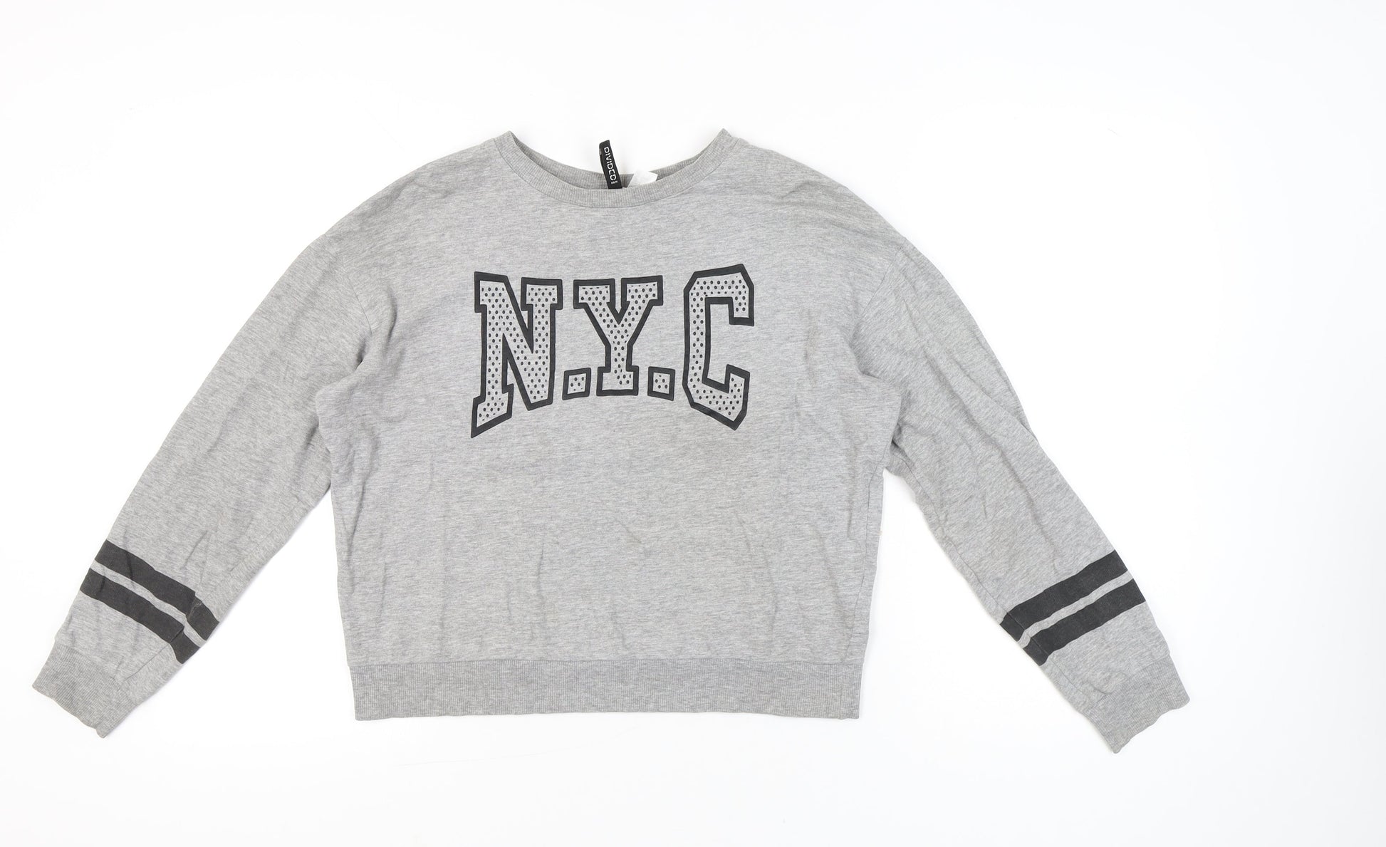 H&M Women Grey NYC Logo Sweatshirt Medium Regular Fit Pullover
