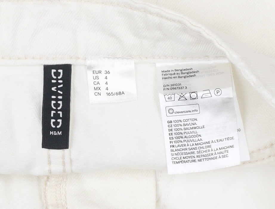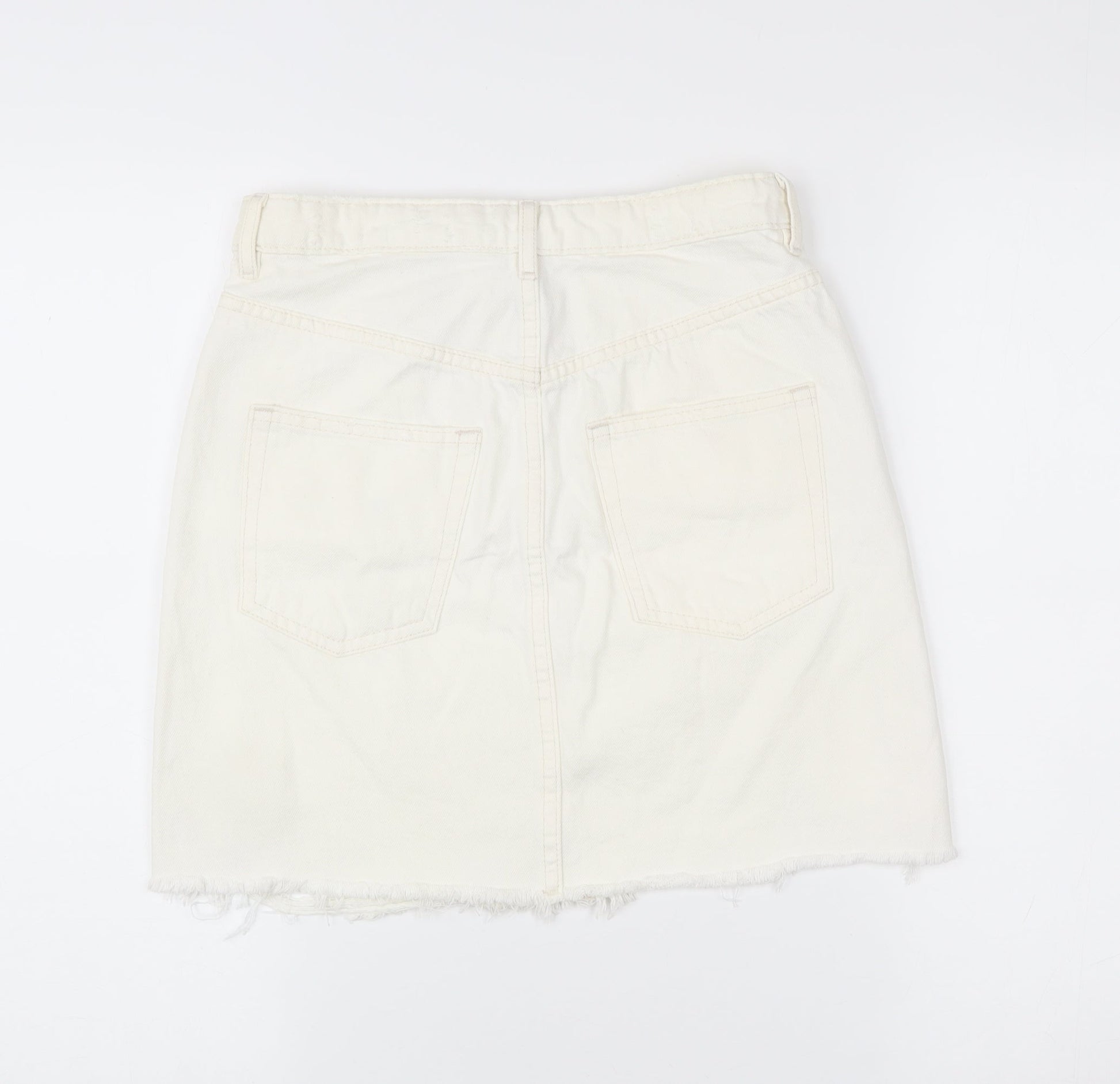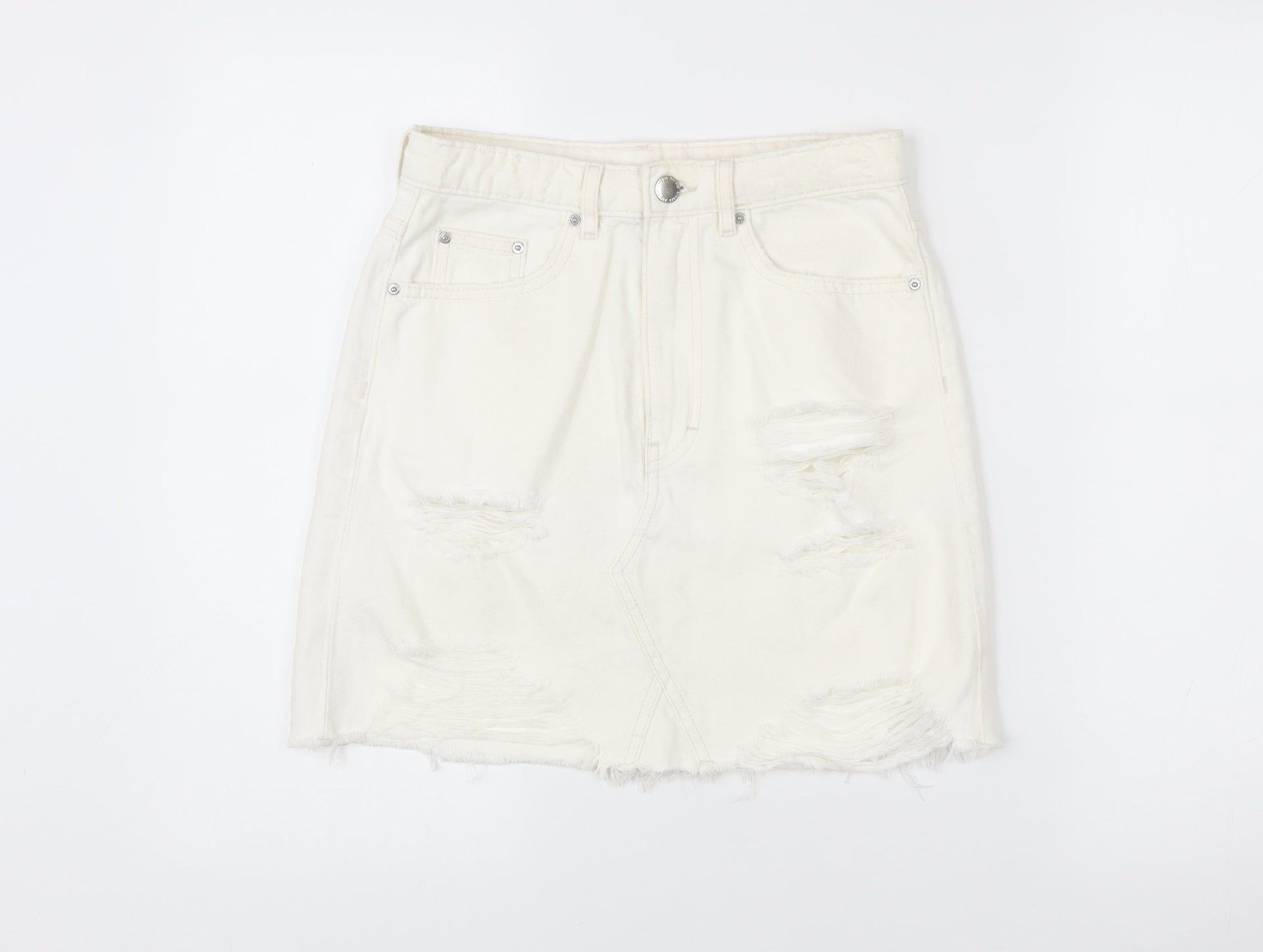 H&M Women Ivory Distressed Denim Skirt Size 10 Short Casual