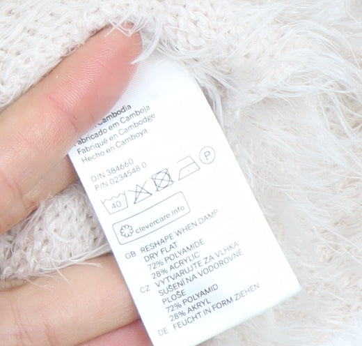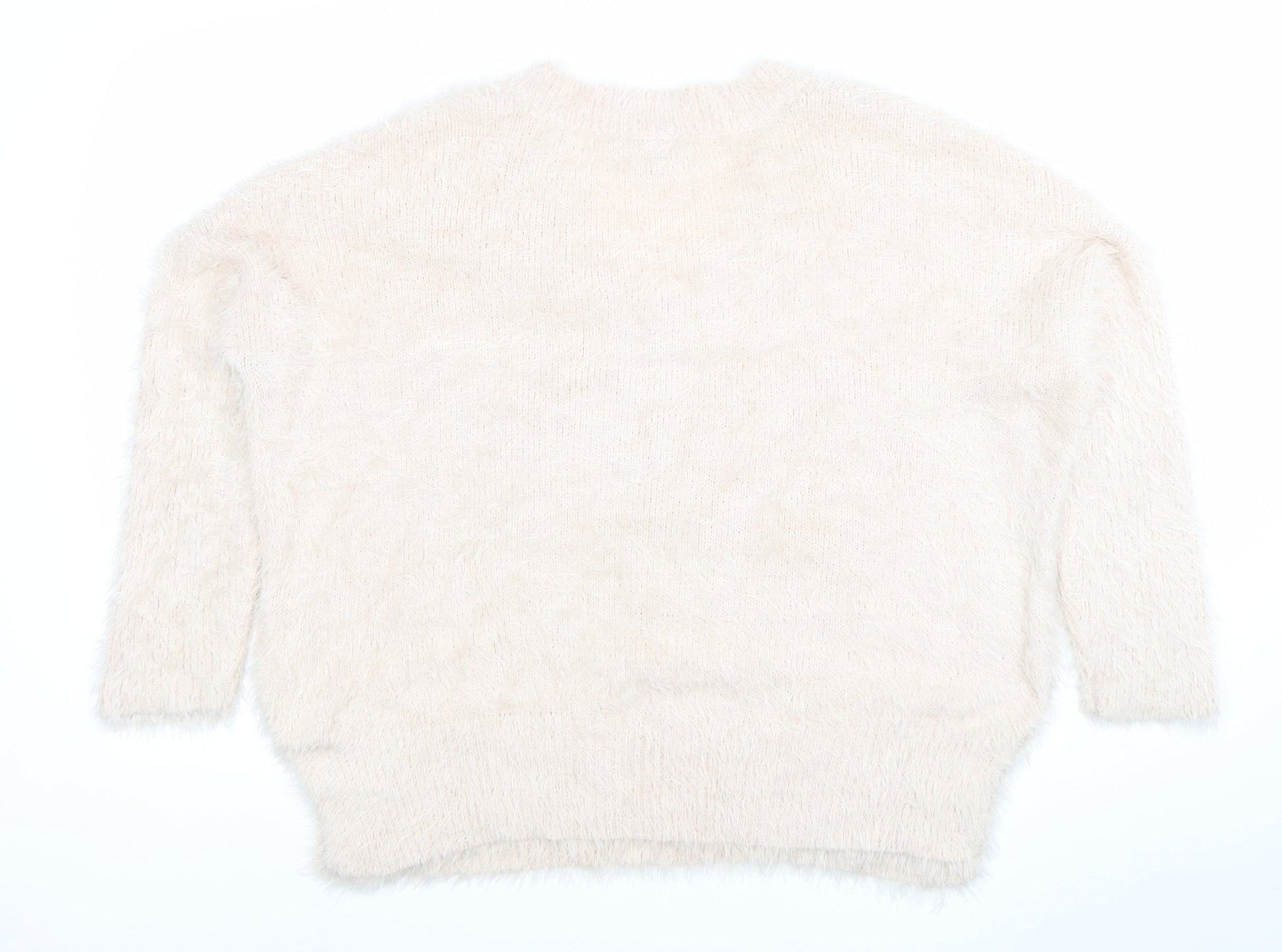H&M Women Ivory Fluffy V-Neck Relaxed Fit Jumper Size 12