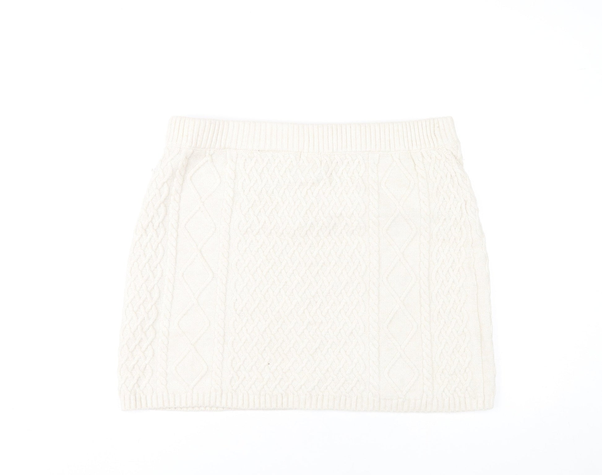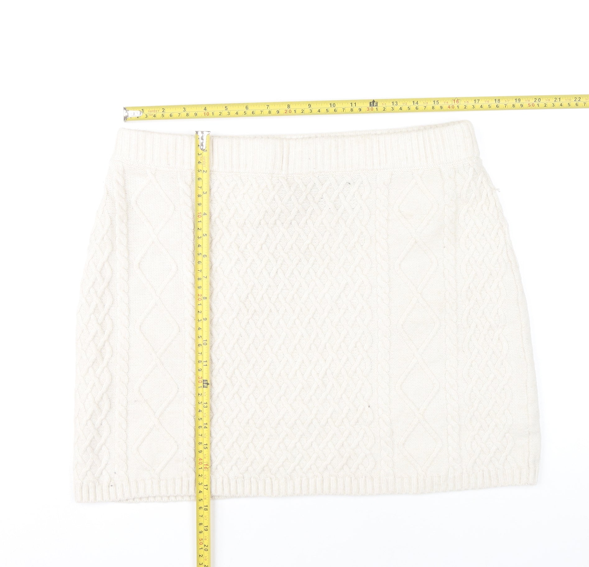 H&M Women Ivory Knit Pencil Skirt L Short Wool Blend Winter
