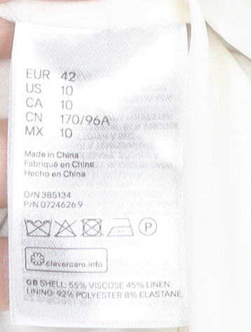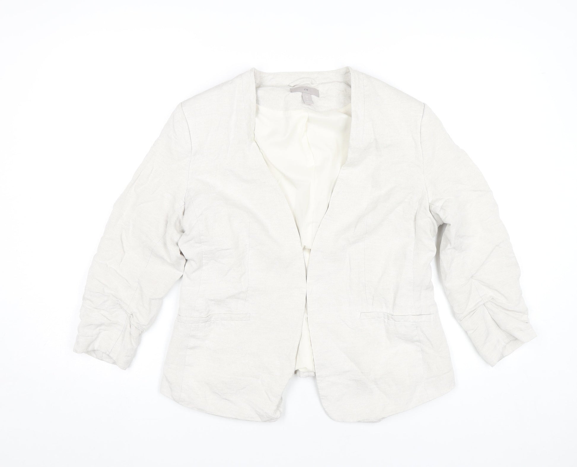 H&M Women Ivory Linen Blend Blazer UK 14 Classic Workwear