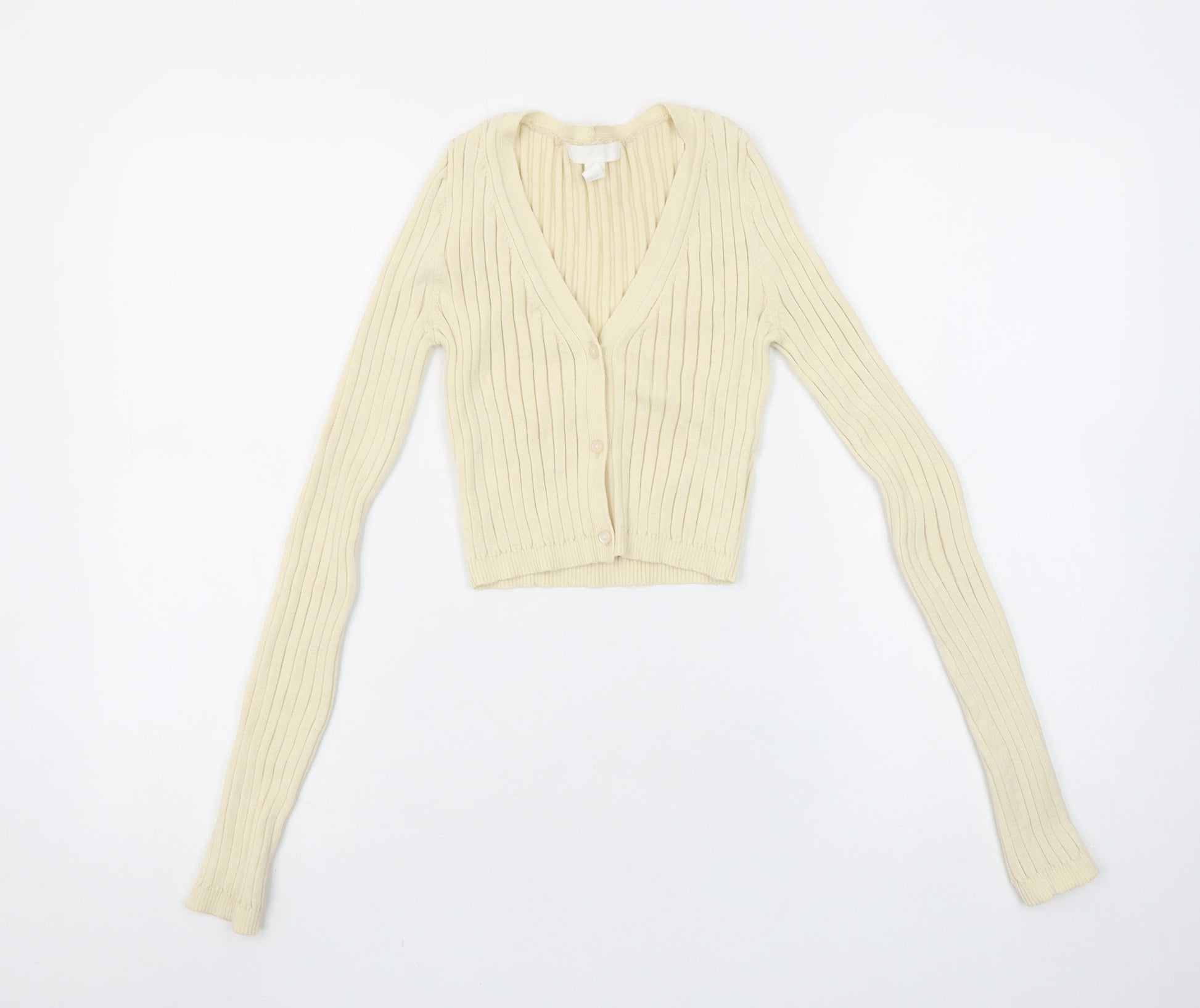 H&M Women Ivory Ribbed V-Neck Cardigan XS Slim Fit Knitwear