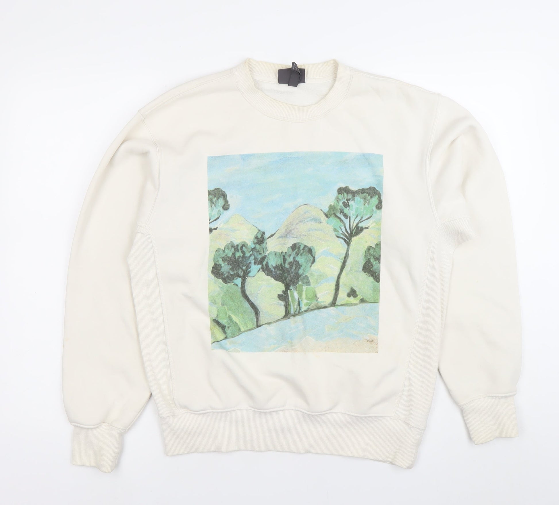 H&M Women Ivory XS Oversized Fit Pullover Sweatshirt with Art Print