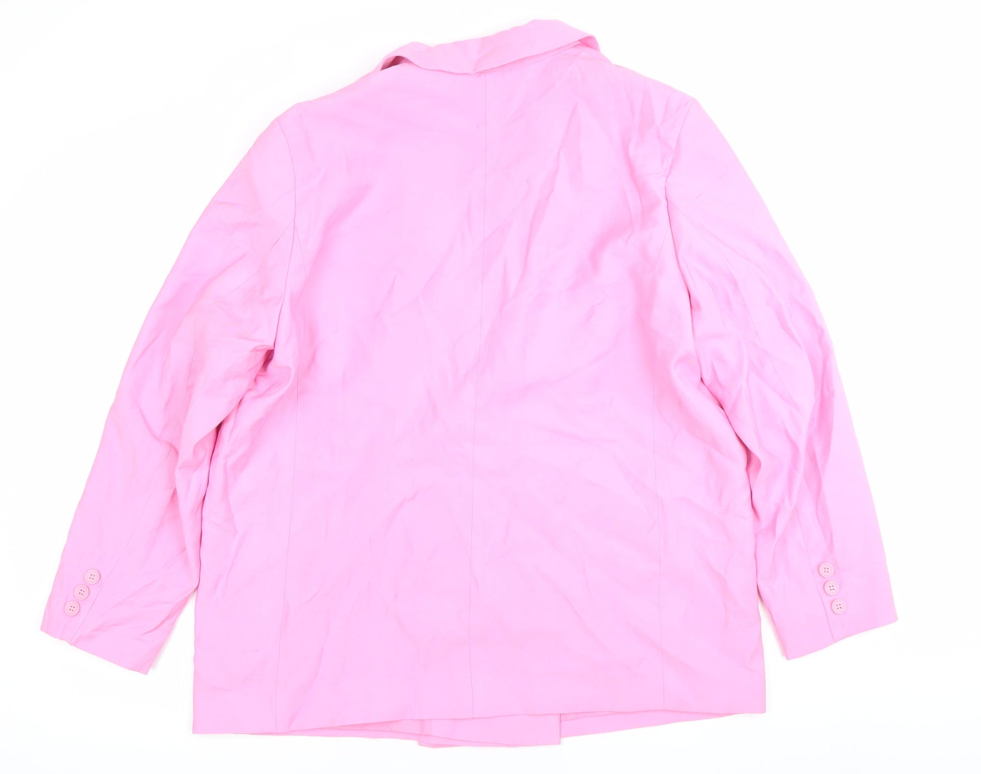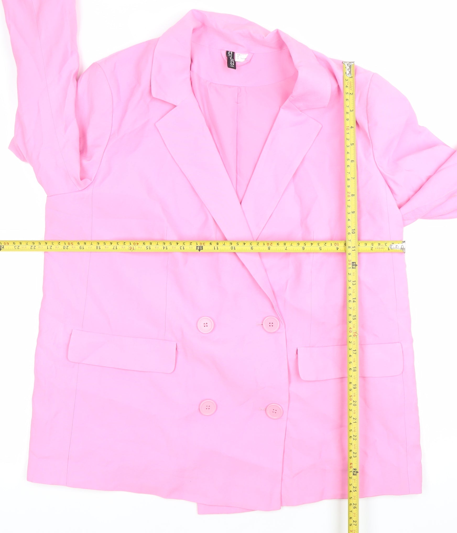 H&M Women Pink Double-Breasted Blazer Jacket L Notch Lapel Workwear