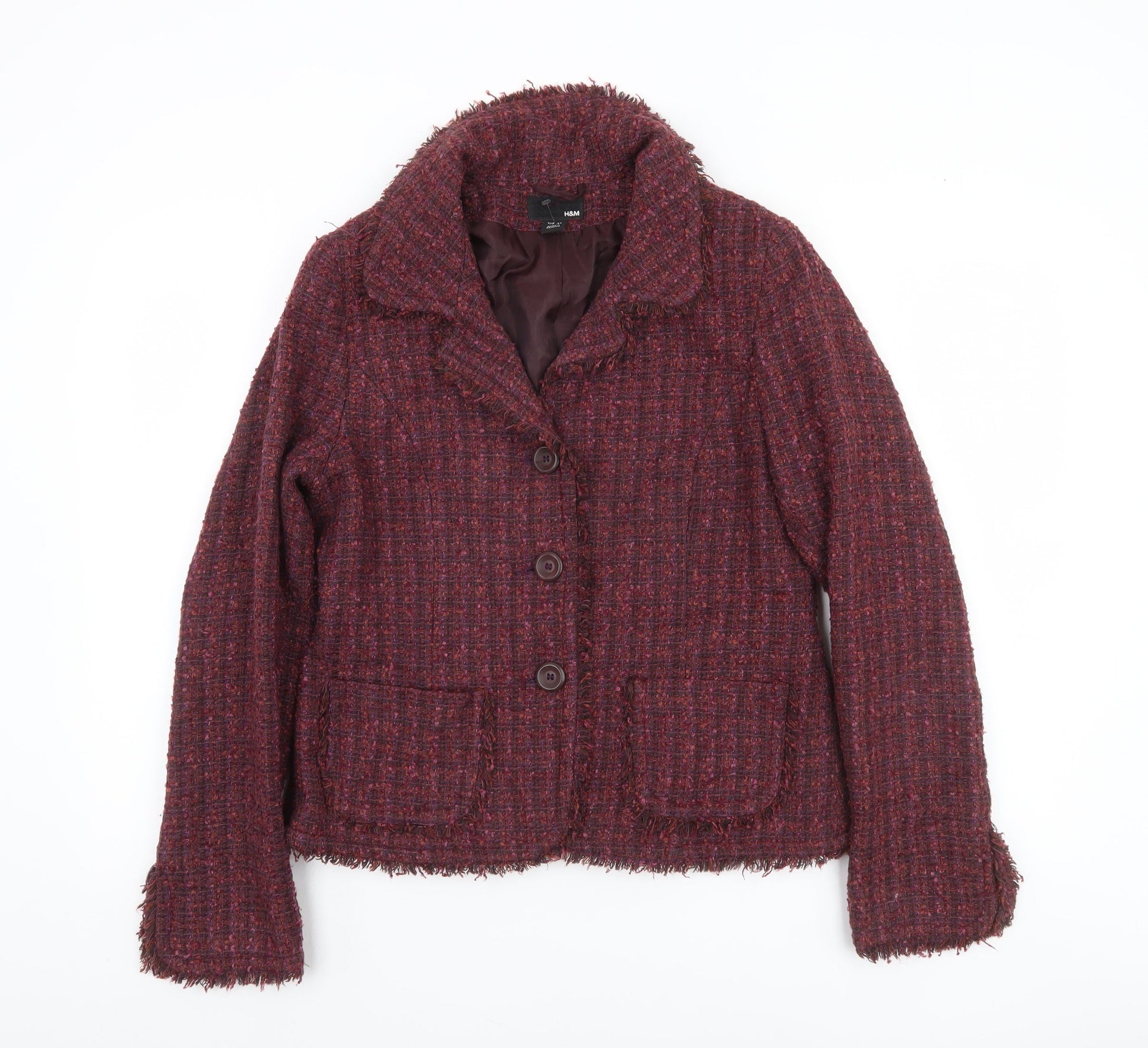 H&M Women Red Tweed Single-Breasted Blazer Size 12