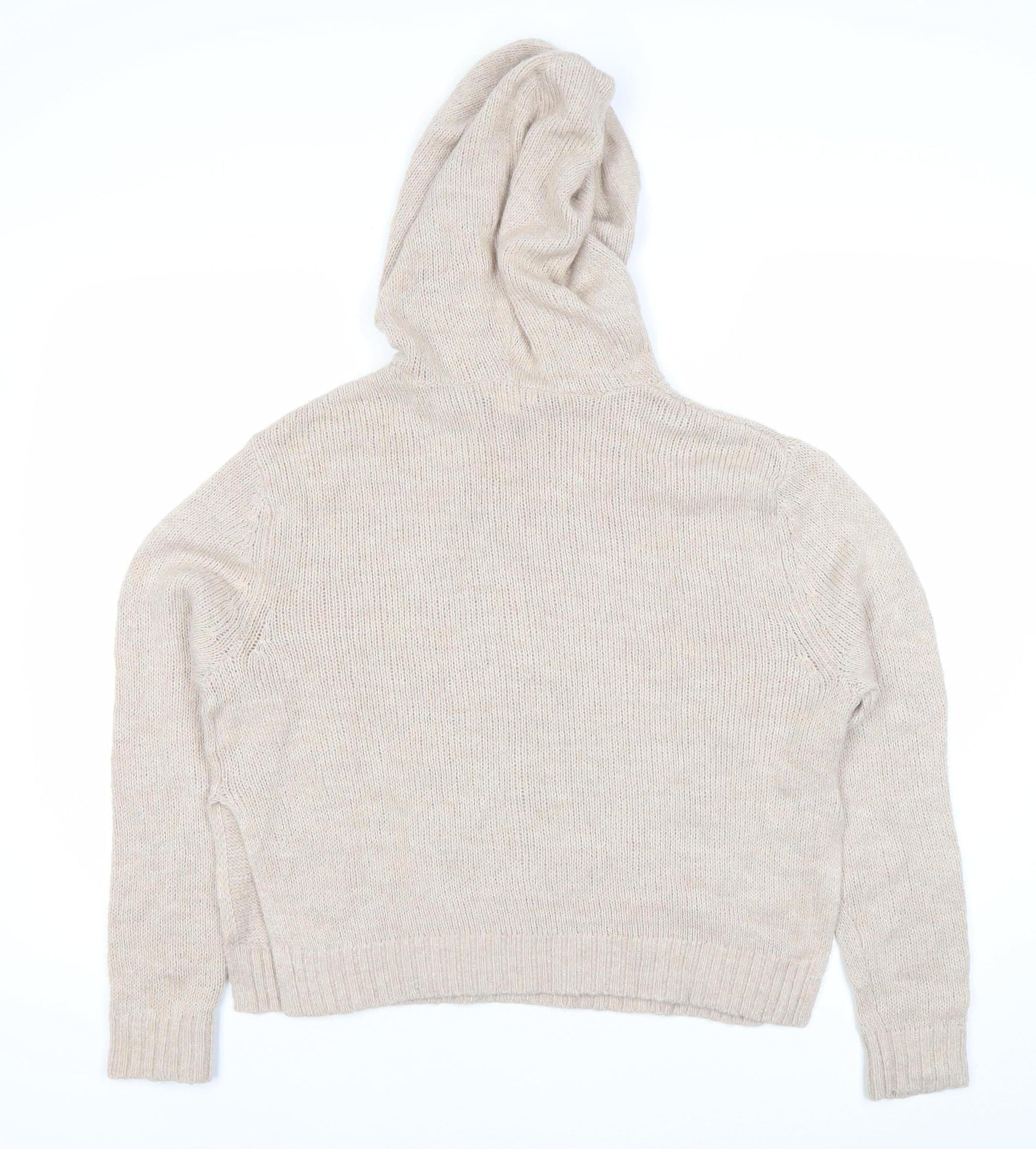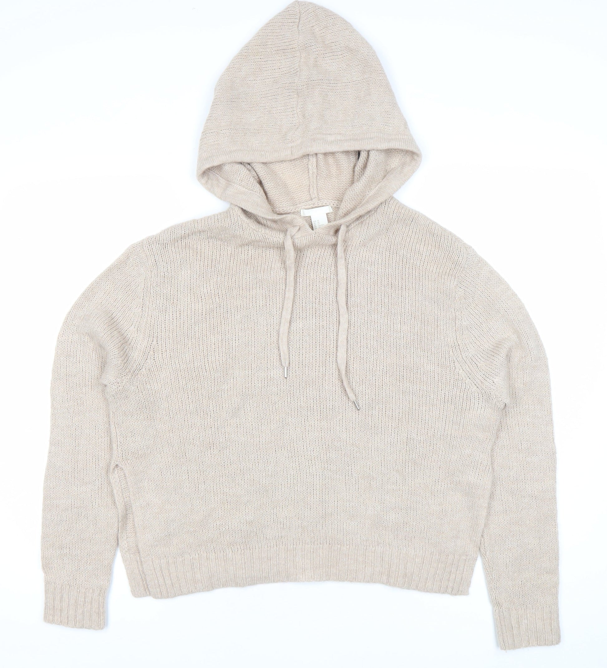 H&M Women’s Beige Hooded Knit Pullover Jumper XS Relaxed Fit