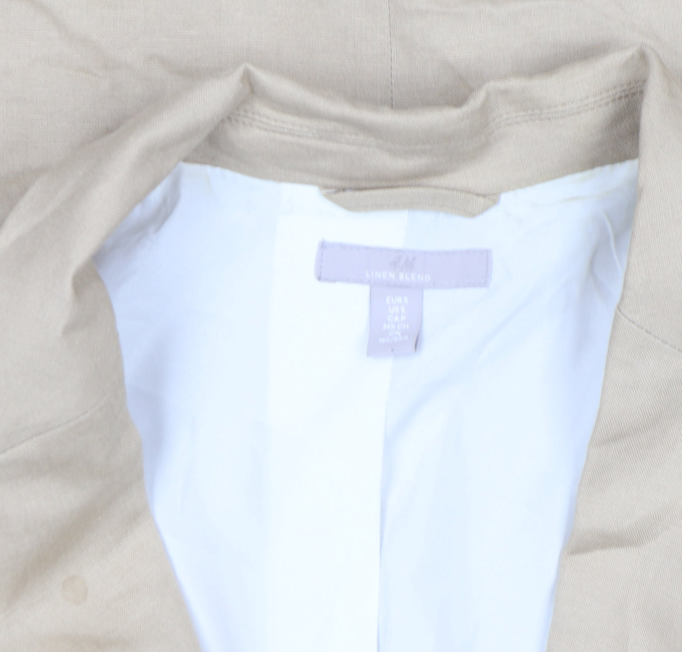 H&M Women’s Beige Linen Blend Blazer Jacket Size S Regular Fit