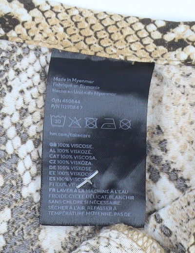 H&M Women’s Beige Snake Print Midi A-Line Skirt Size 12