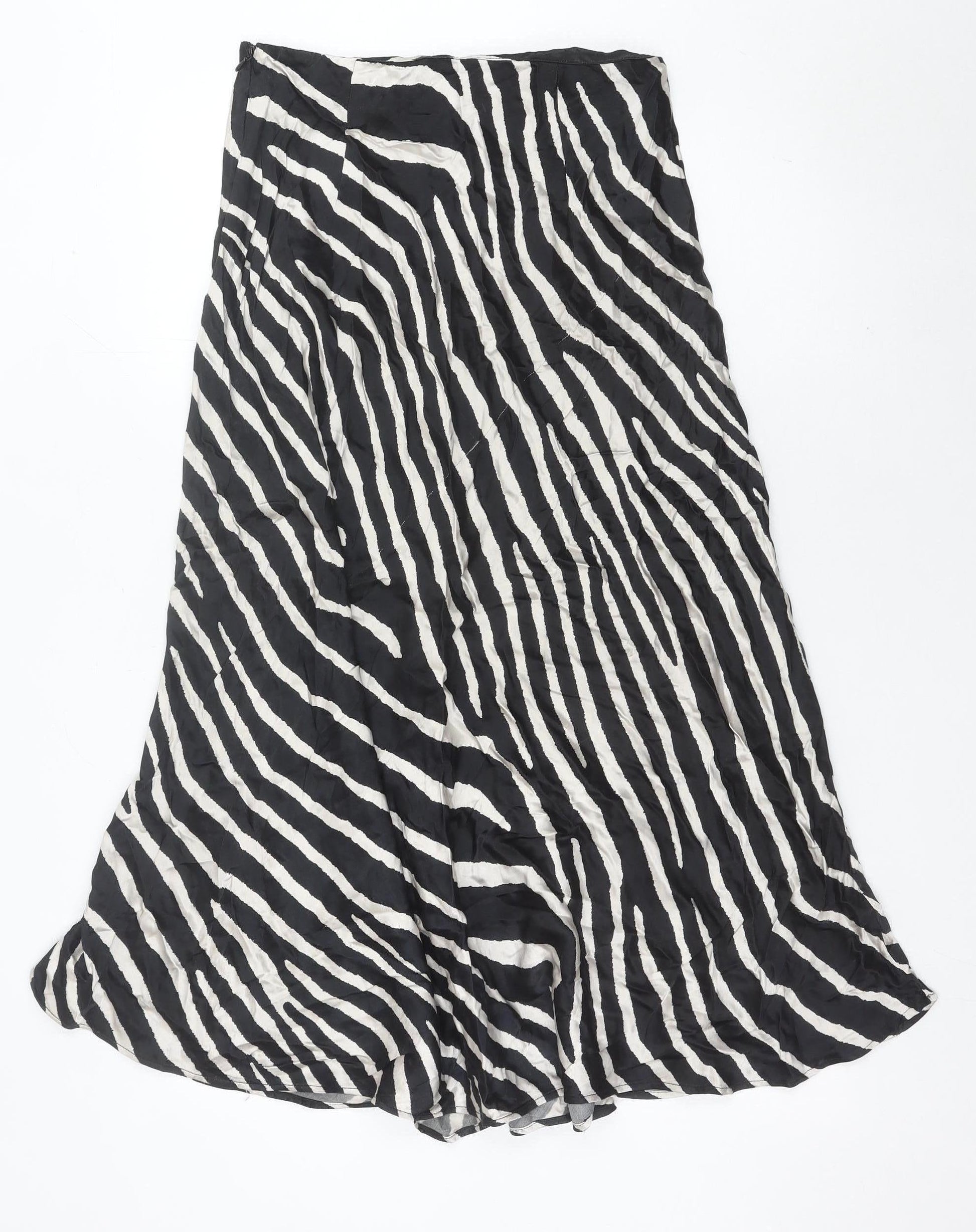 H&M Women’s Black Animal Print Midi Wrap Skirt UK 10 Viscose