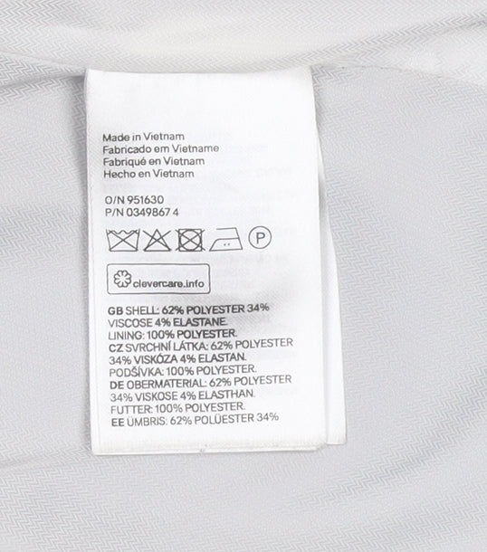 - Material Breakdown: 62% Polyester 34% Viscose 4% Elastane