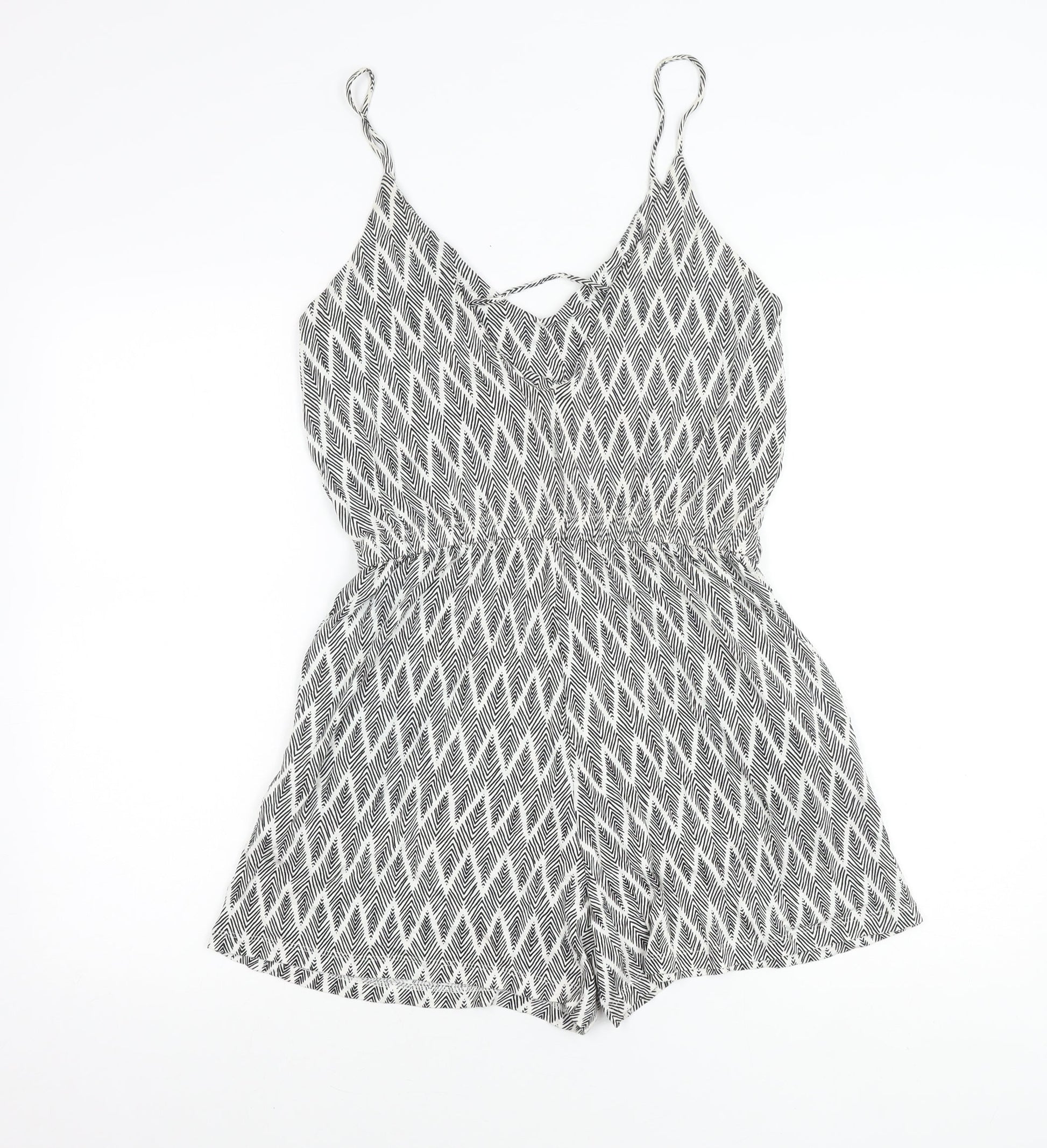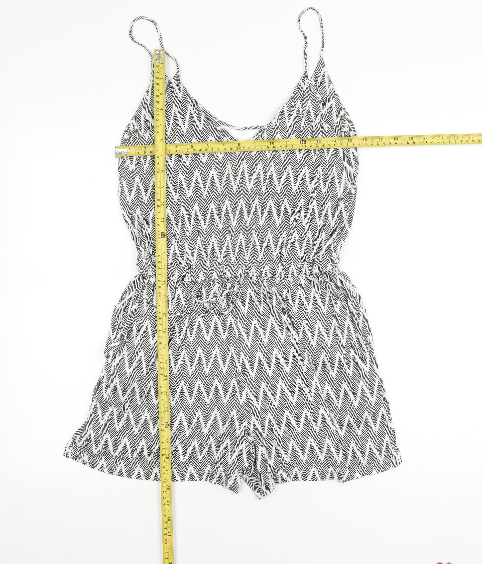 H&M Women’s Black Geometric V-Neck Sleeveless Playsuit Size 8