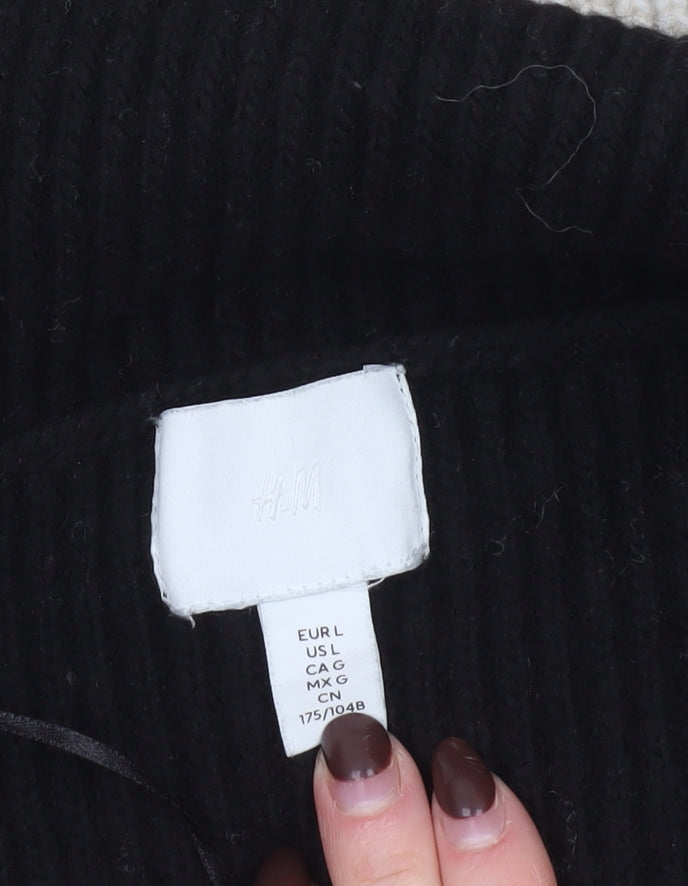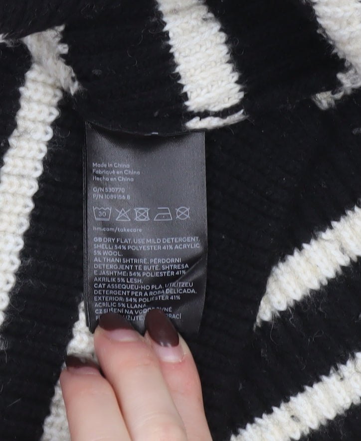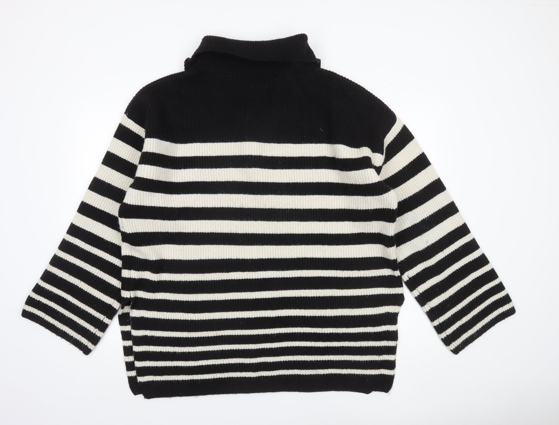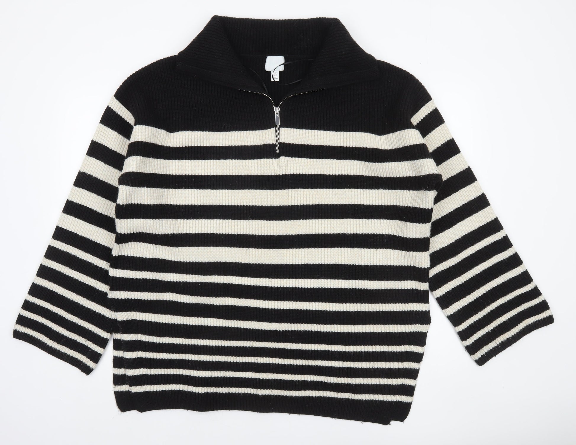 H&M Women’s Black Striped High Neck 1/4 Zip Knit Jumper Size L